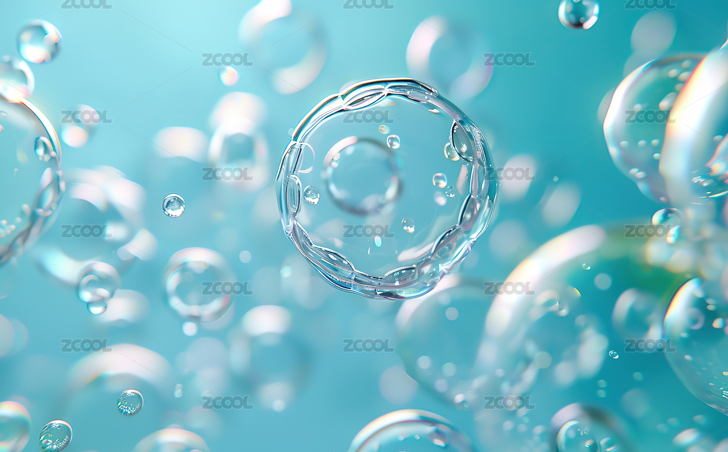 化妆品保湿水分子精华液体气泡背景3d渲染