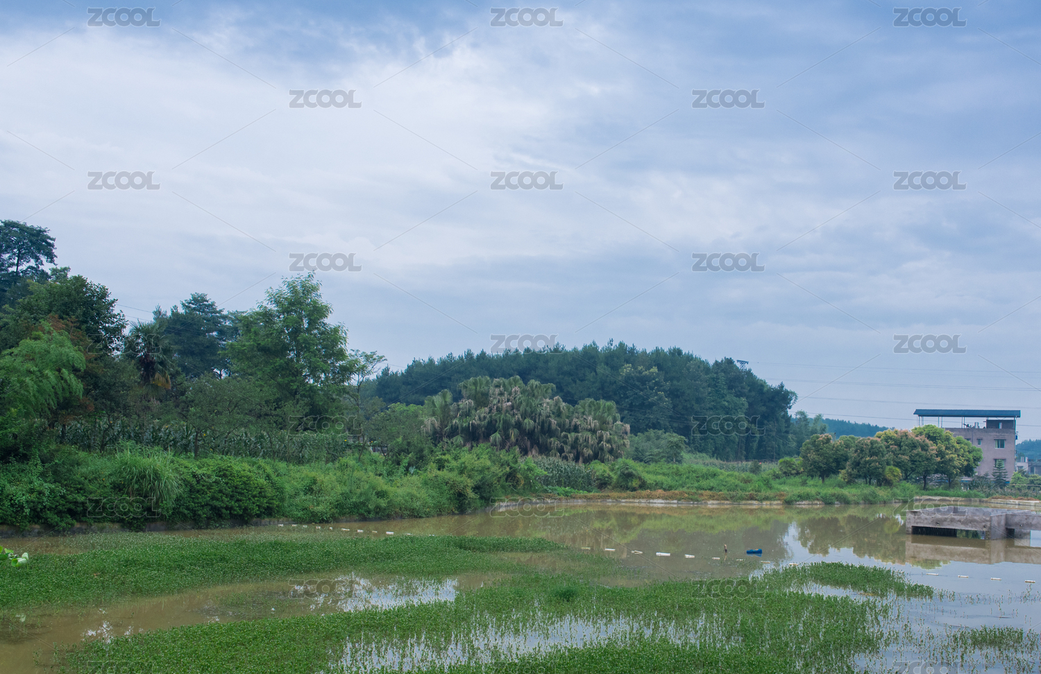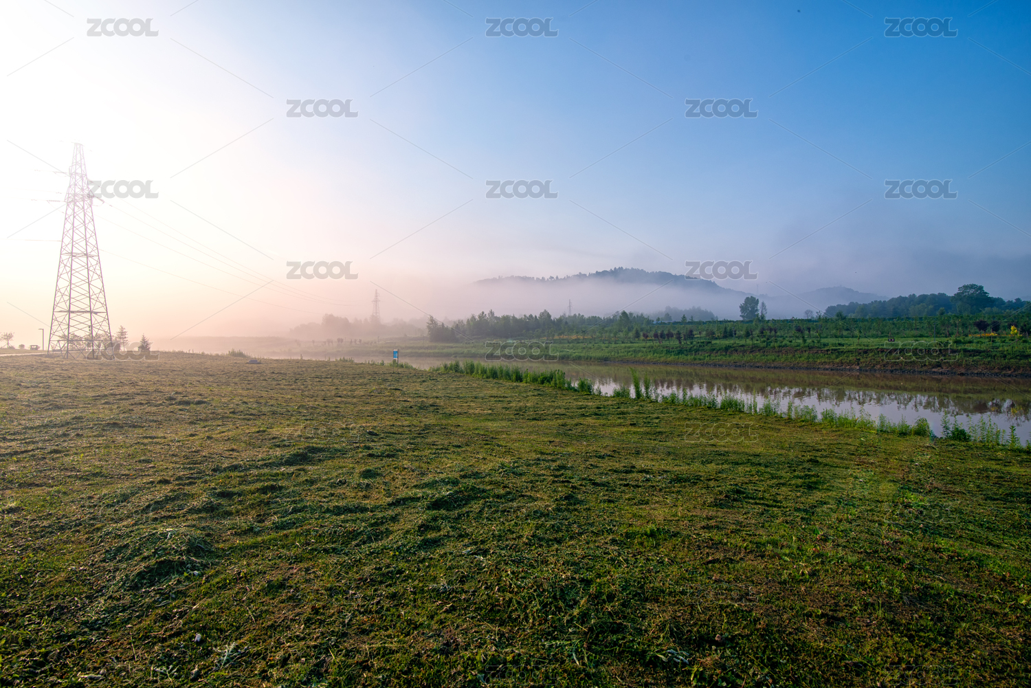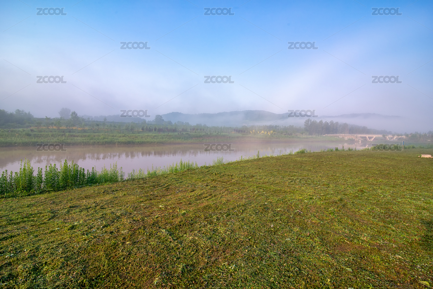 雾气中湖南溆浦溆水河两岸的乡村风貌