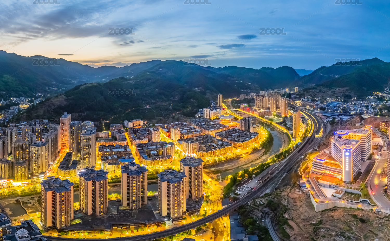 贵州都匀市城市傍晚建筑
