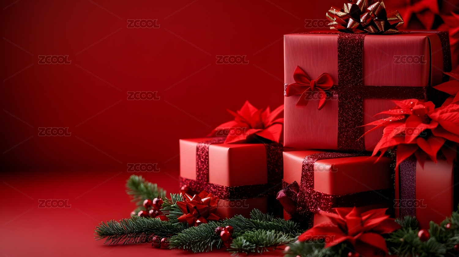 红色圣诞节金色礼盒电商背景素材