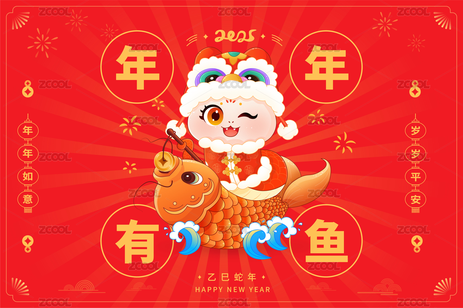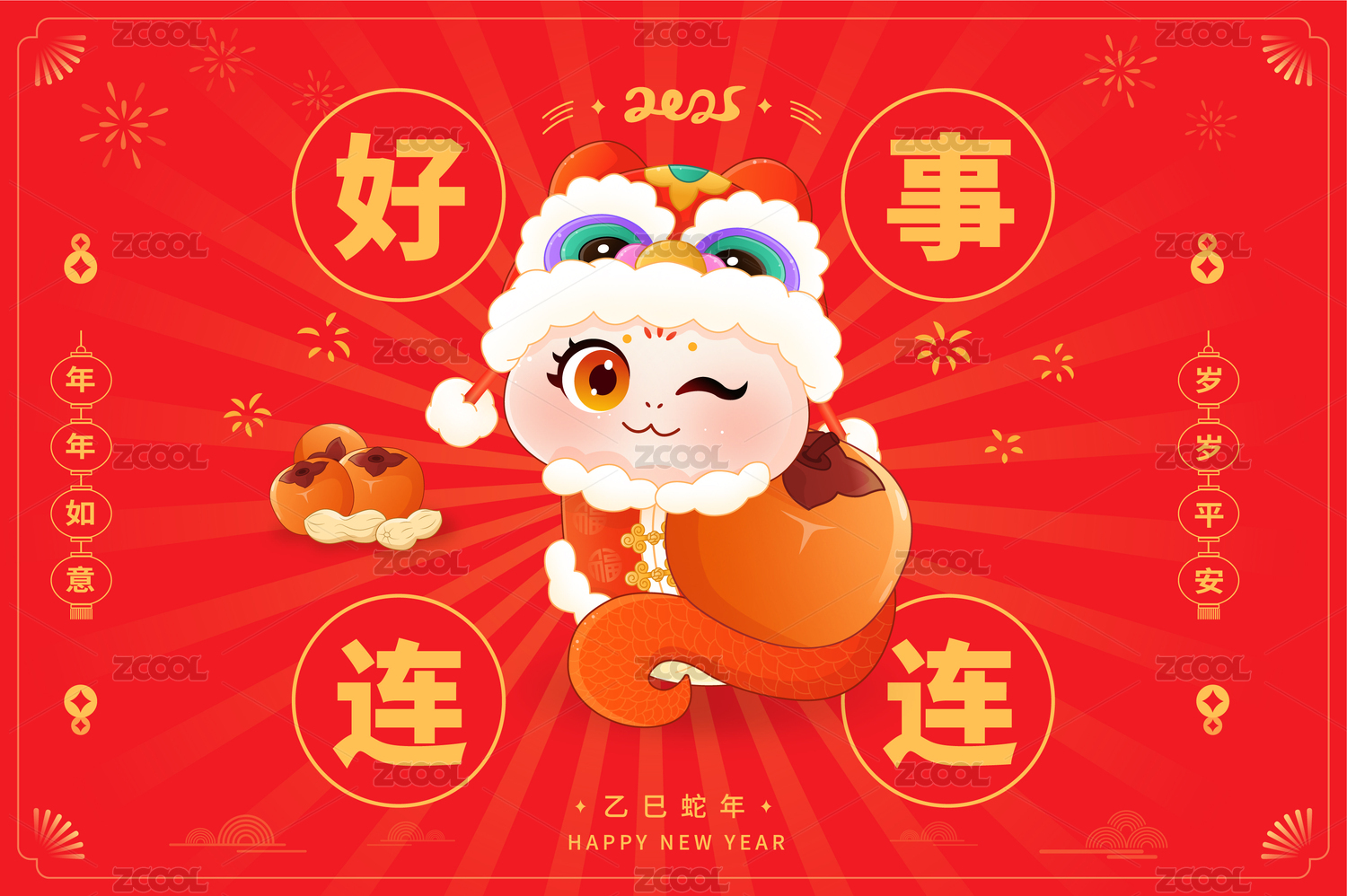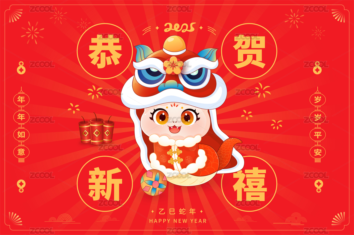 蛇年,生肖蛇,卡通蛇,2025年,新年,春节,插画,可爱风,蛇,吉祥物