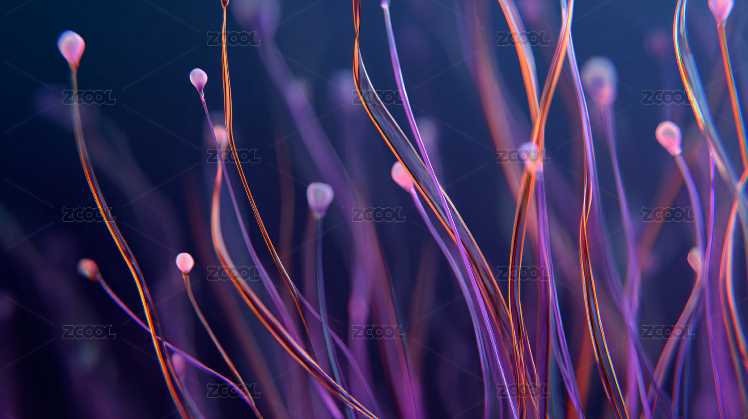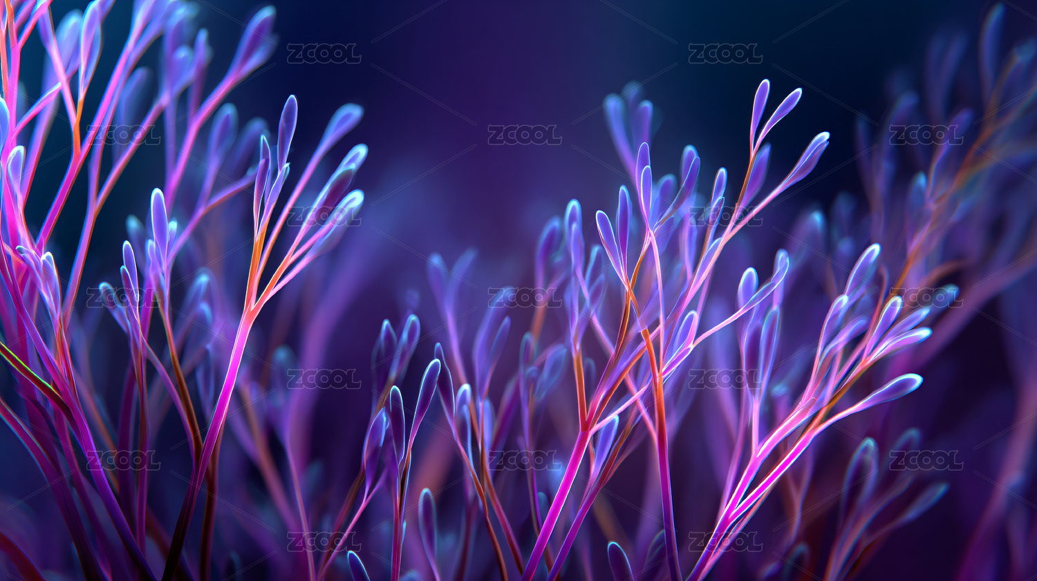 水面的荧光色柳条柳叶3D立体金属赛博插画