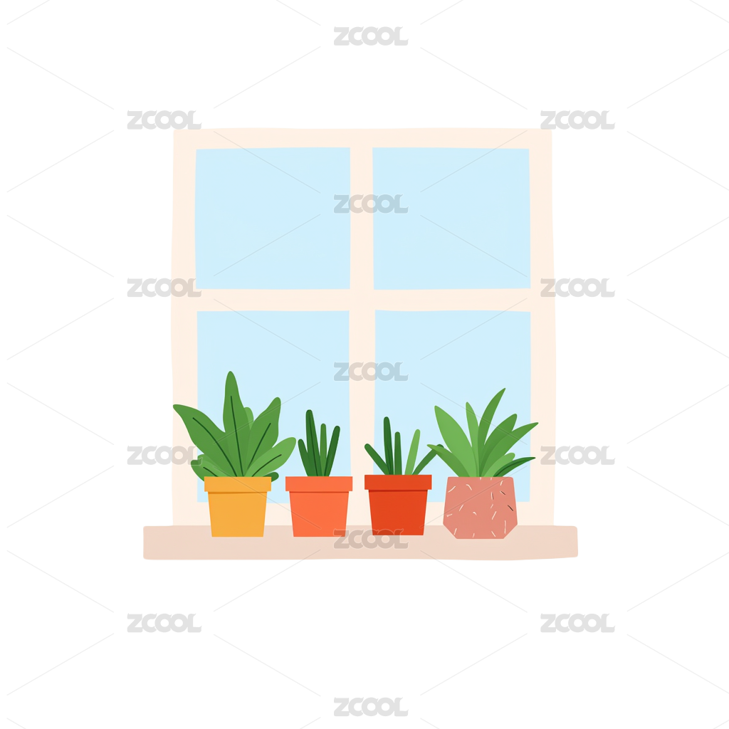 室内,窗户,窗框,窗台,棕色,金色,矢量,装饰,插画,可爱
