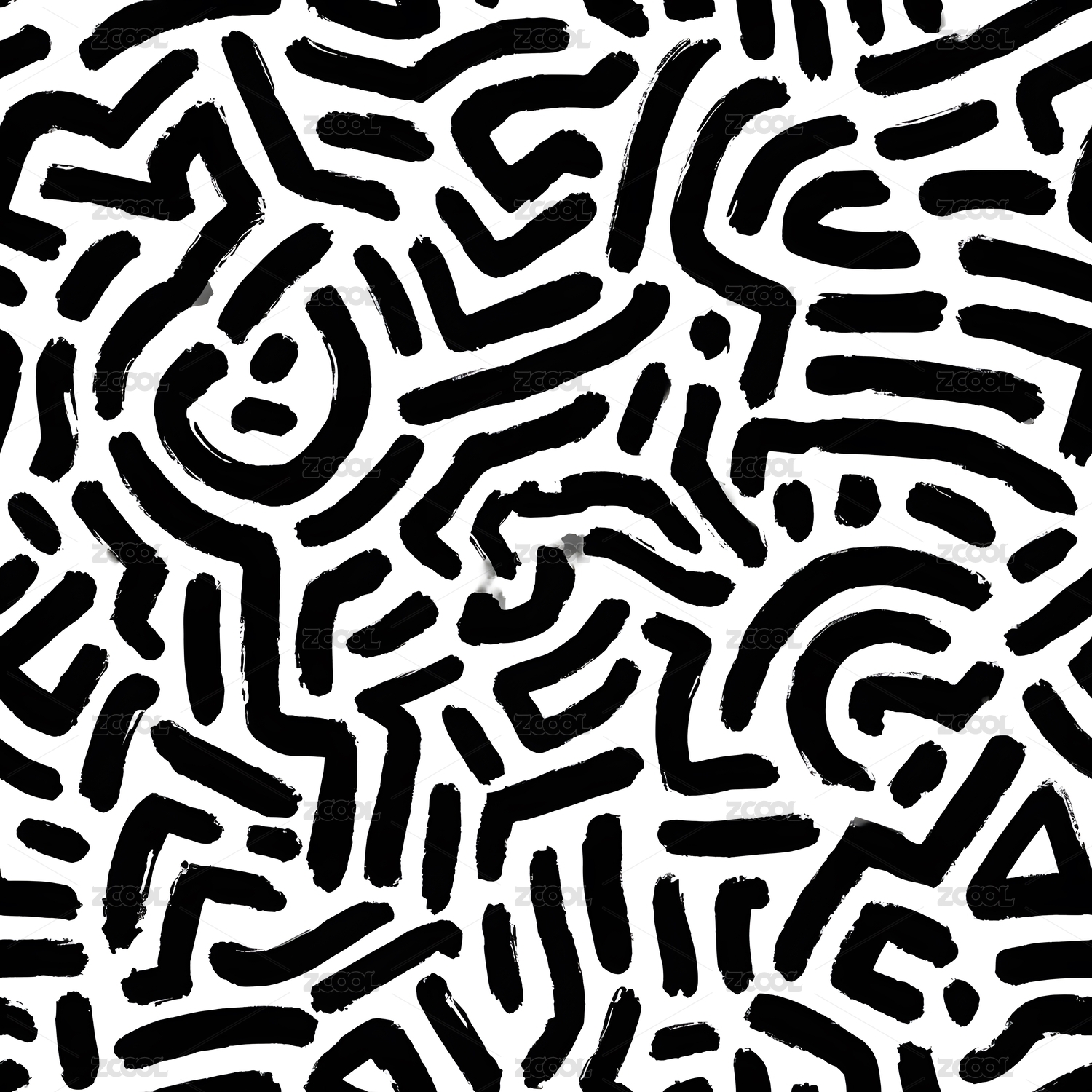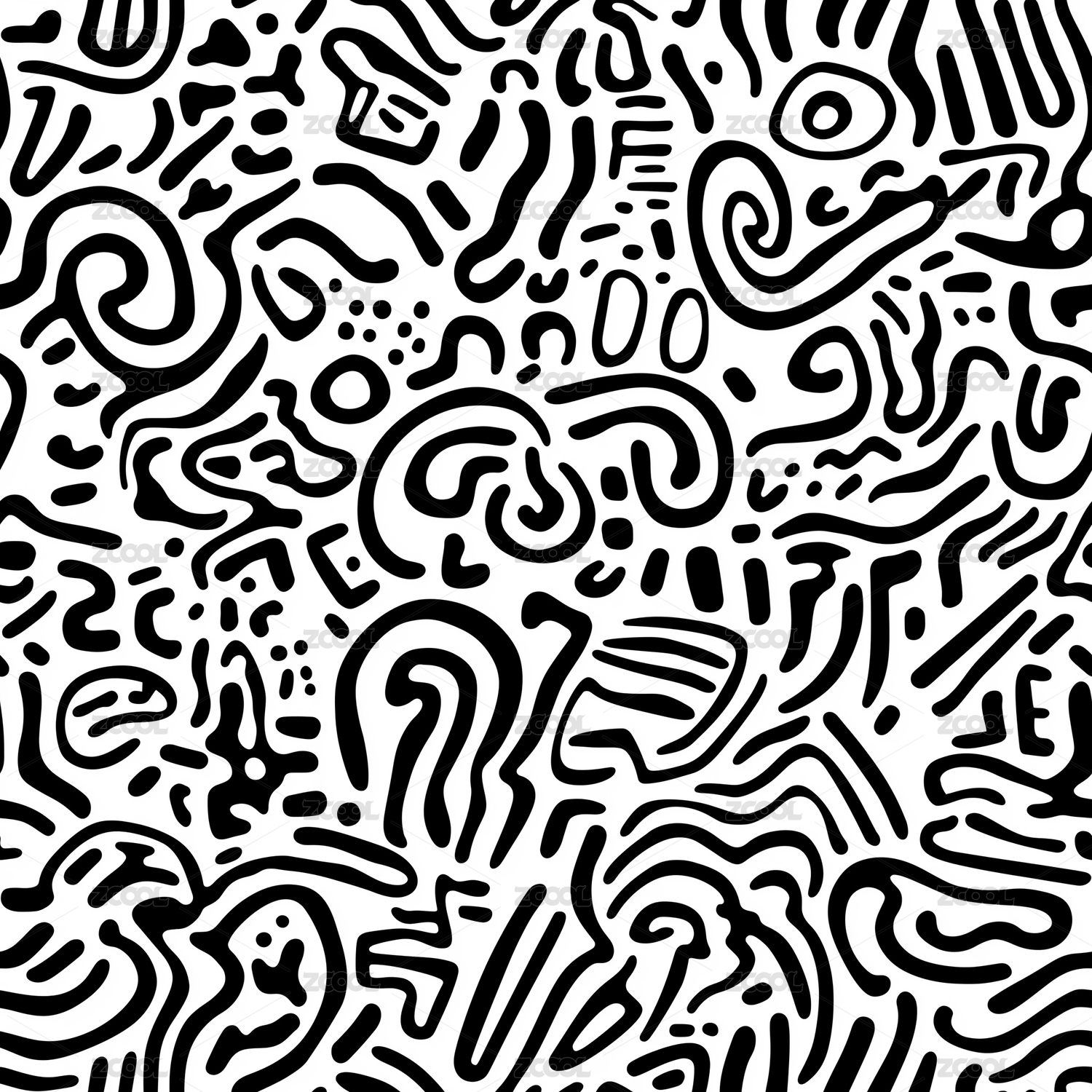 黑白不规则线条构成的抽象图案