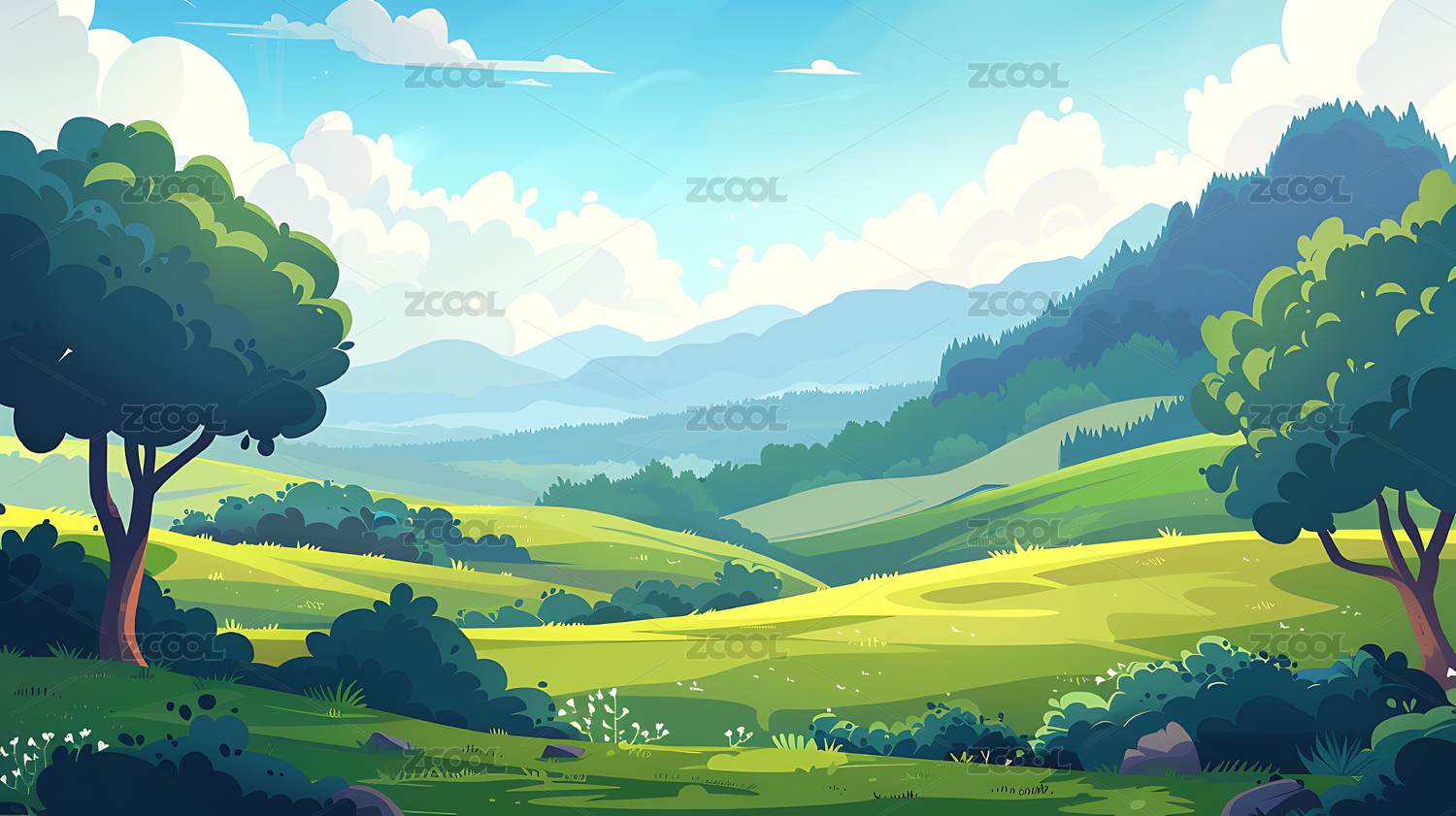 户外,天空,地形,风景,绿色,高山,树,无人,田地,草