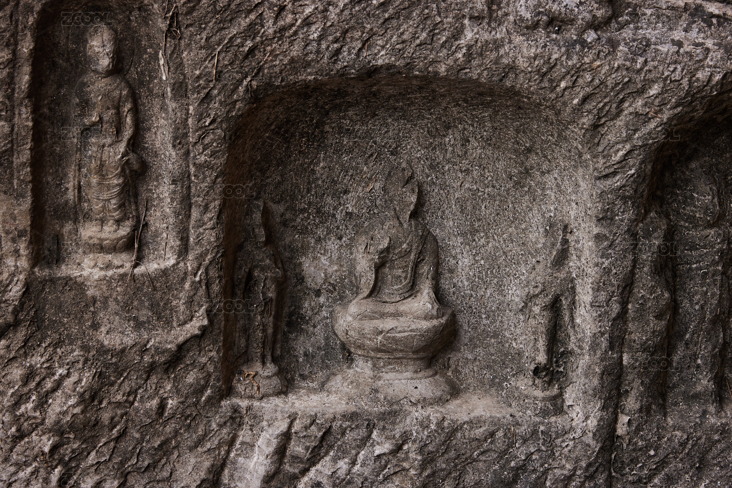 中国河南洛阳龙门石窟的石壁上的小佛像