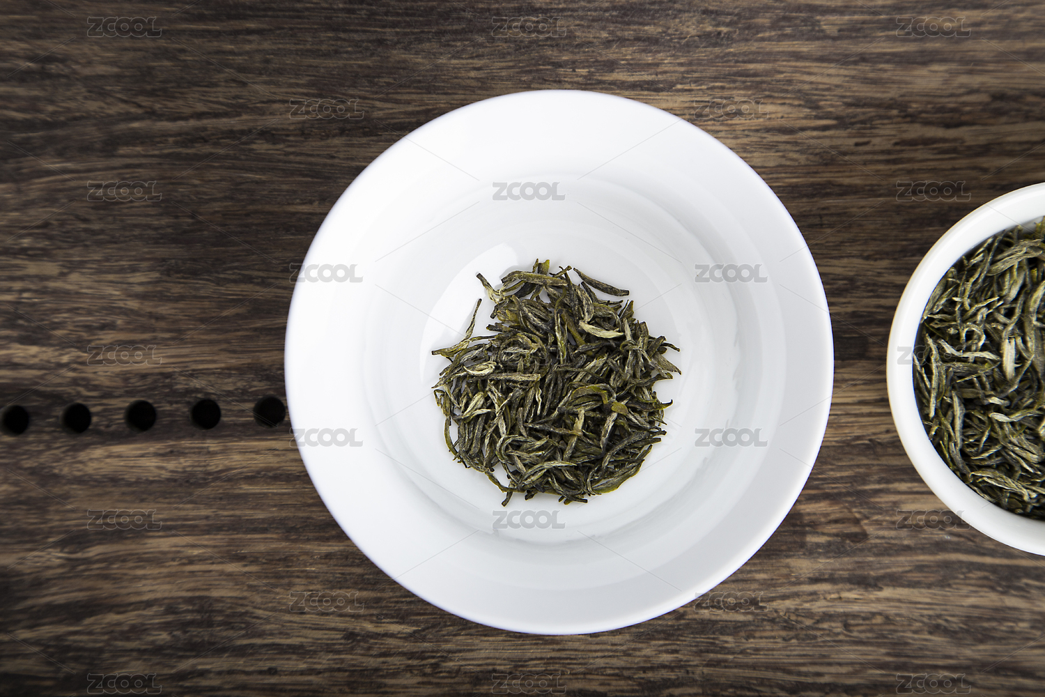 绿茶特写展示在木盘上