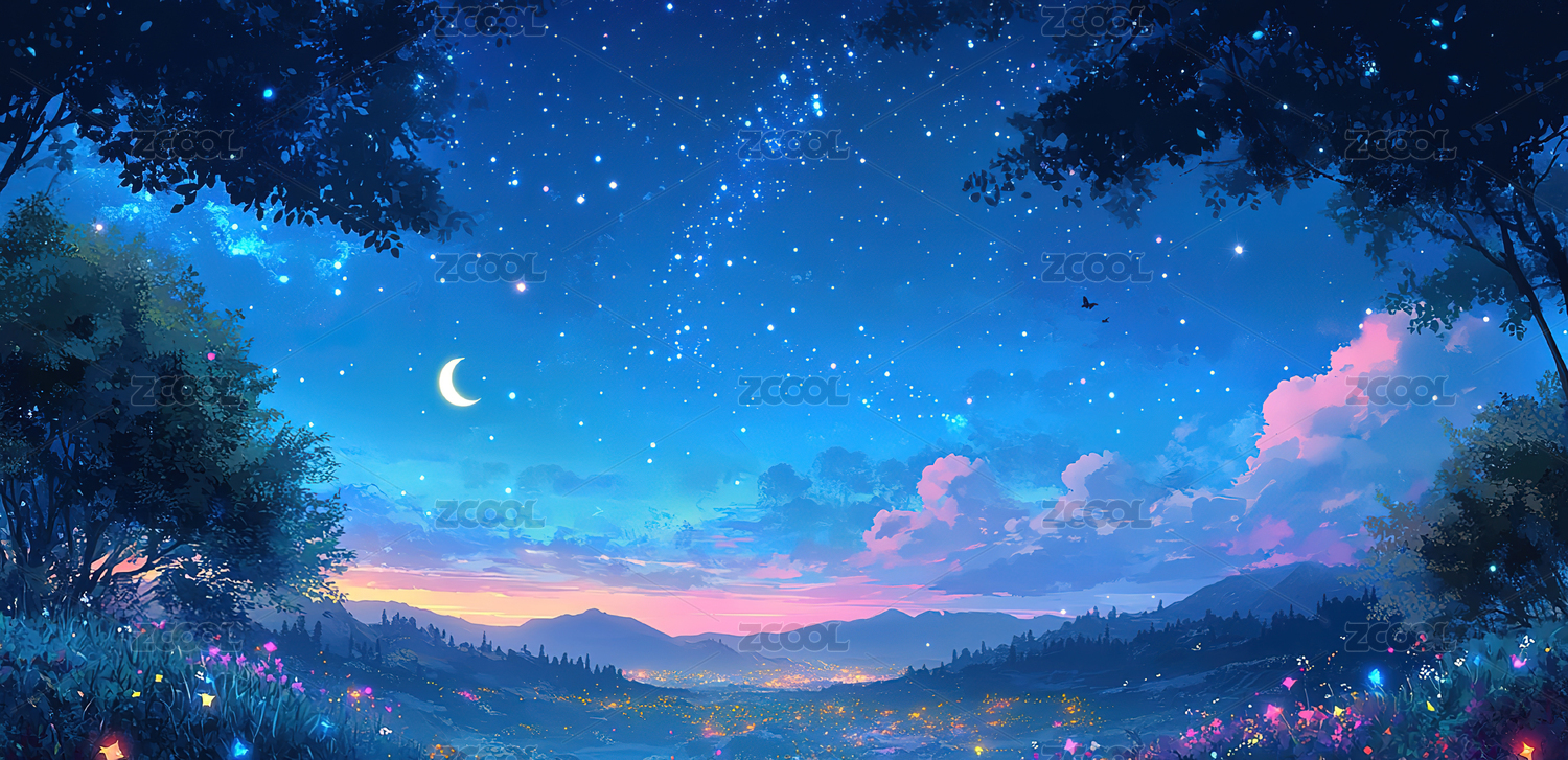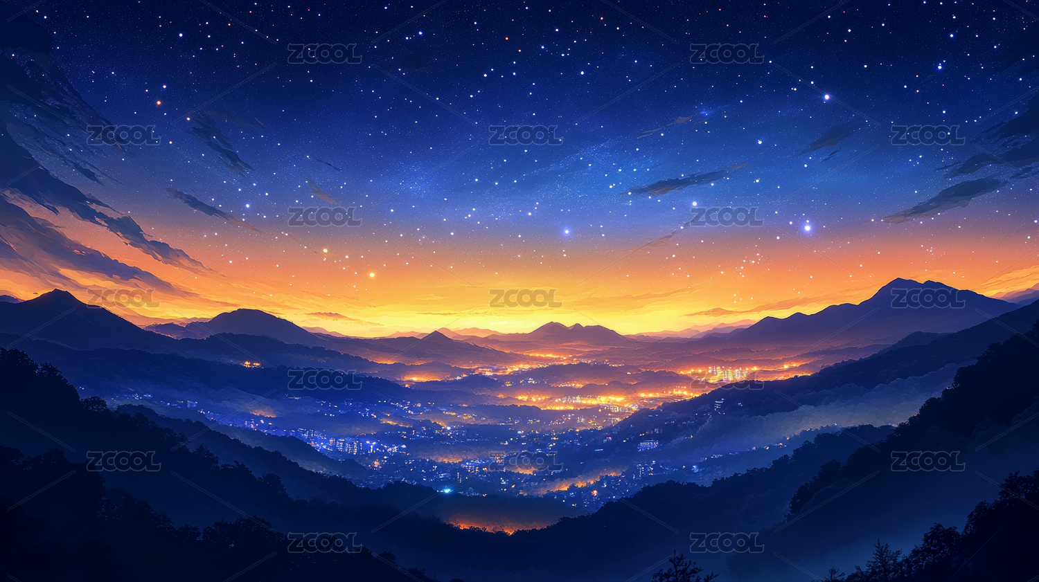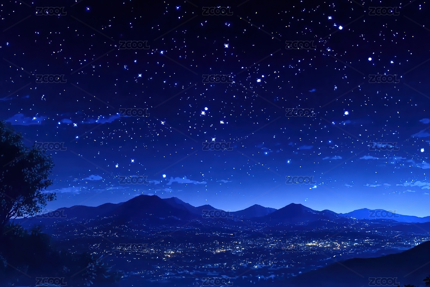 蓝色,星空,夜景,夜晚,光,月夜,美景,云,城市,山城