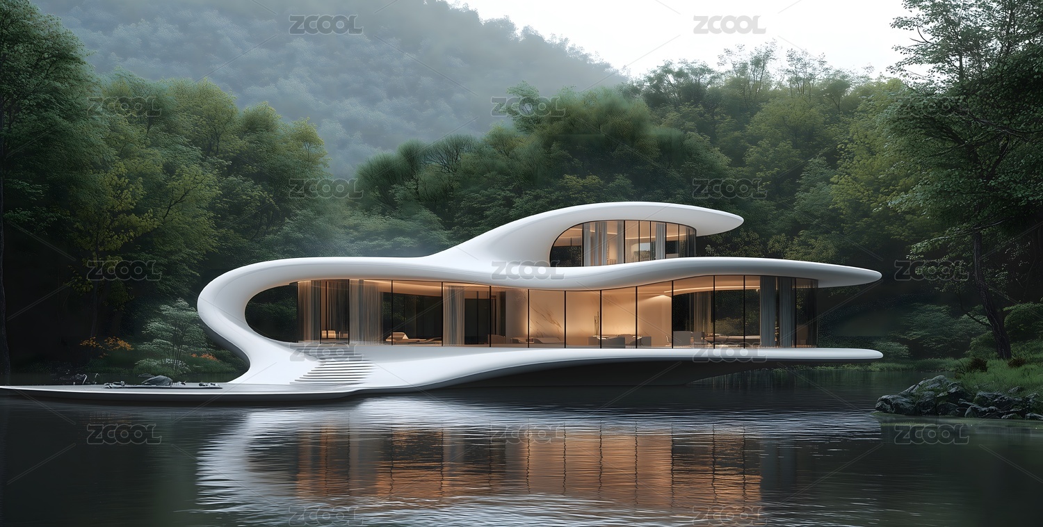 未来感湖边别墅