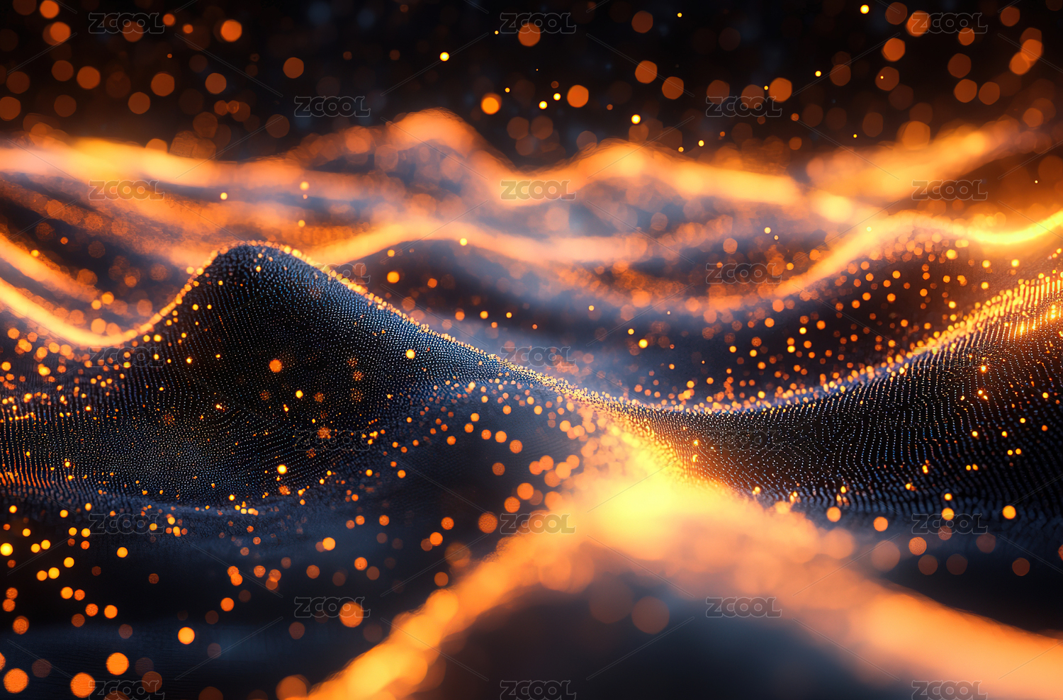 蓝橙波浪与光点粒子