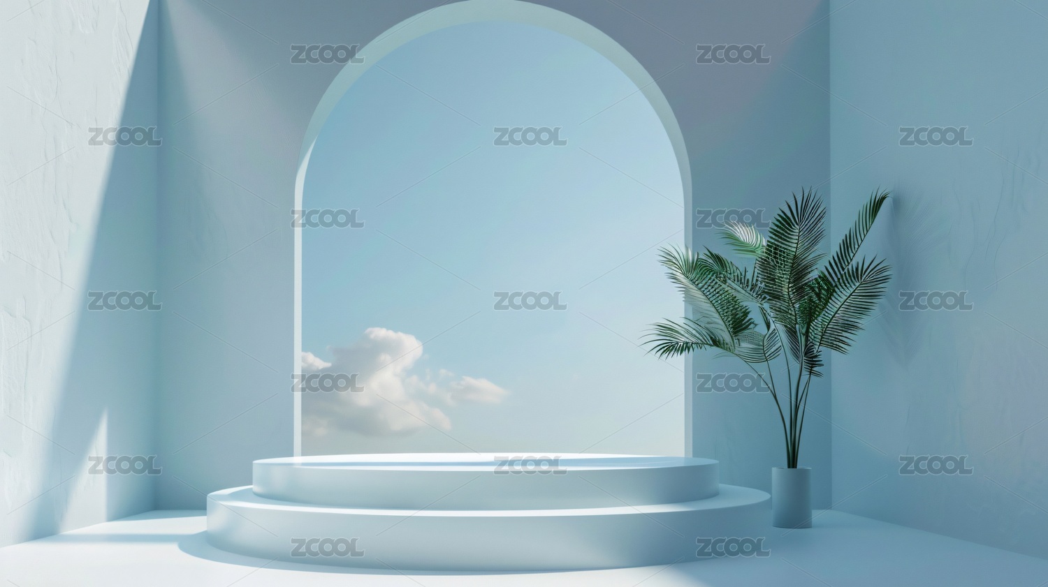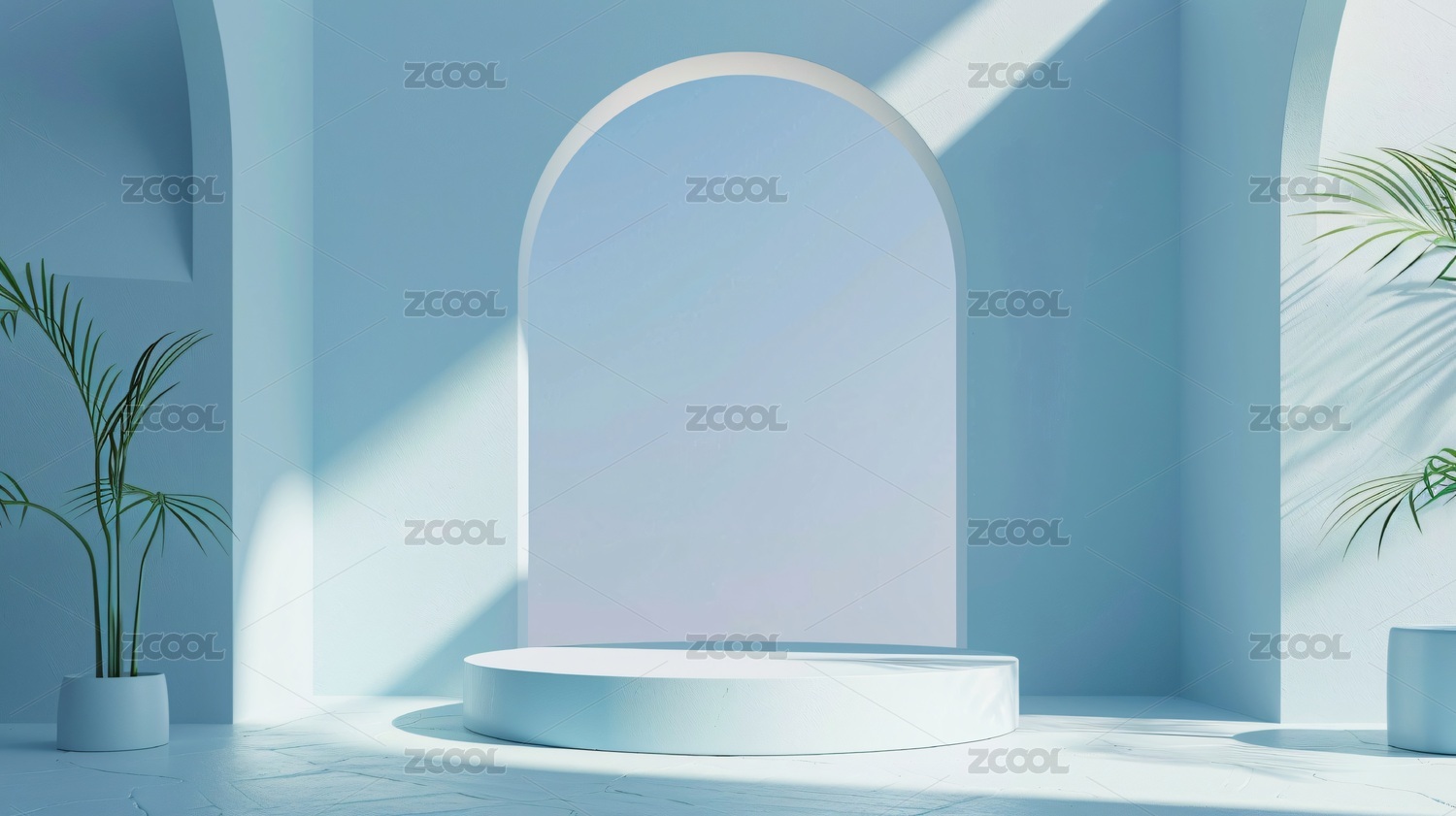 浅蓝色半圆拱门圆台产品展示场景