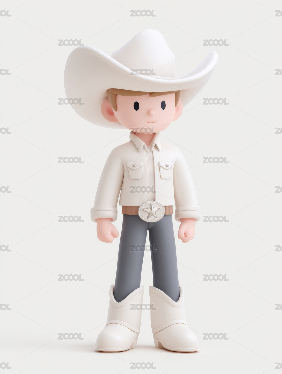 戴白帽的卡通牛仔男孩