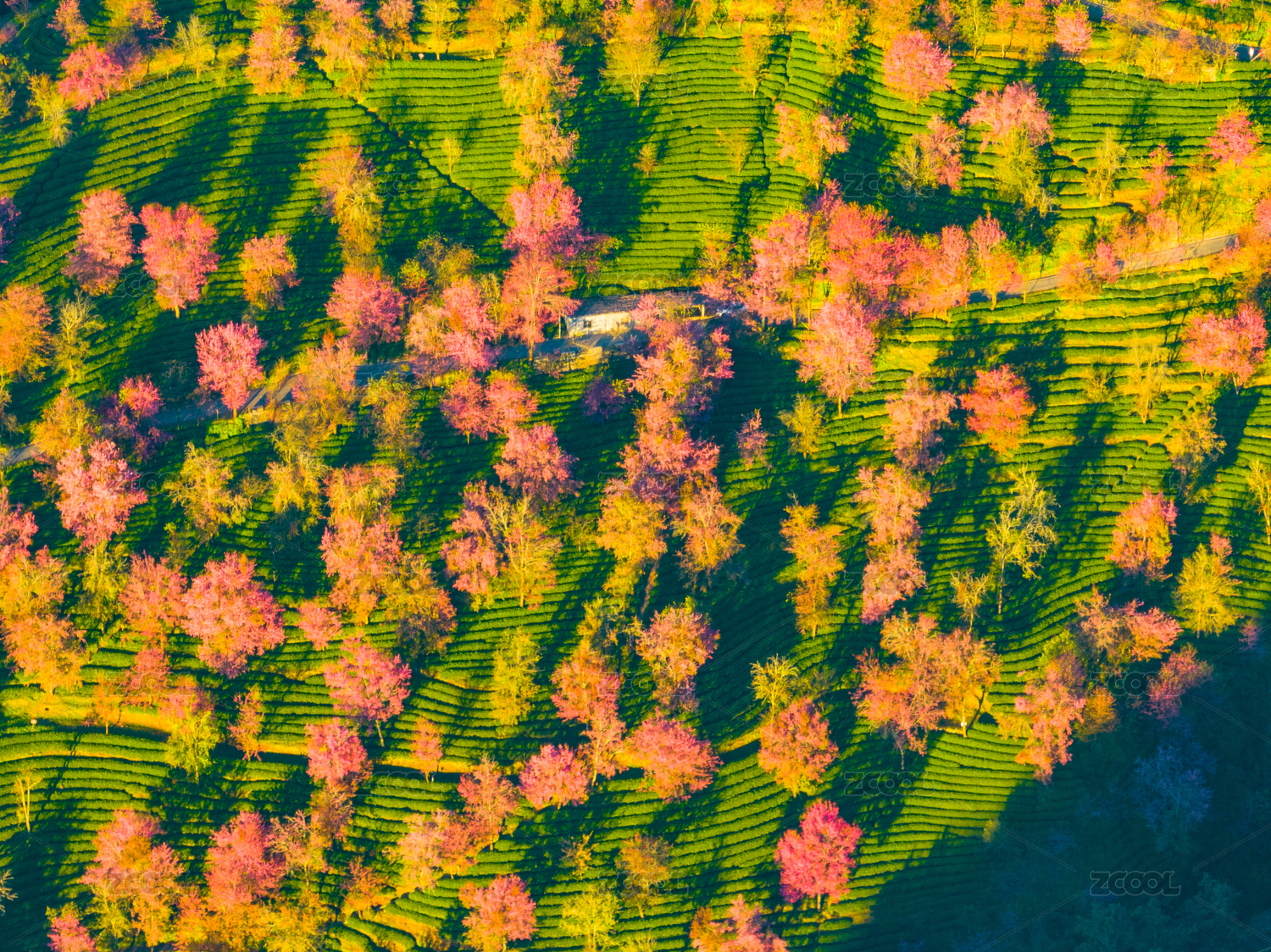 福建省龙岩市永福镇台品樱花茶园航拍风光