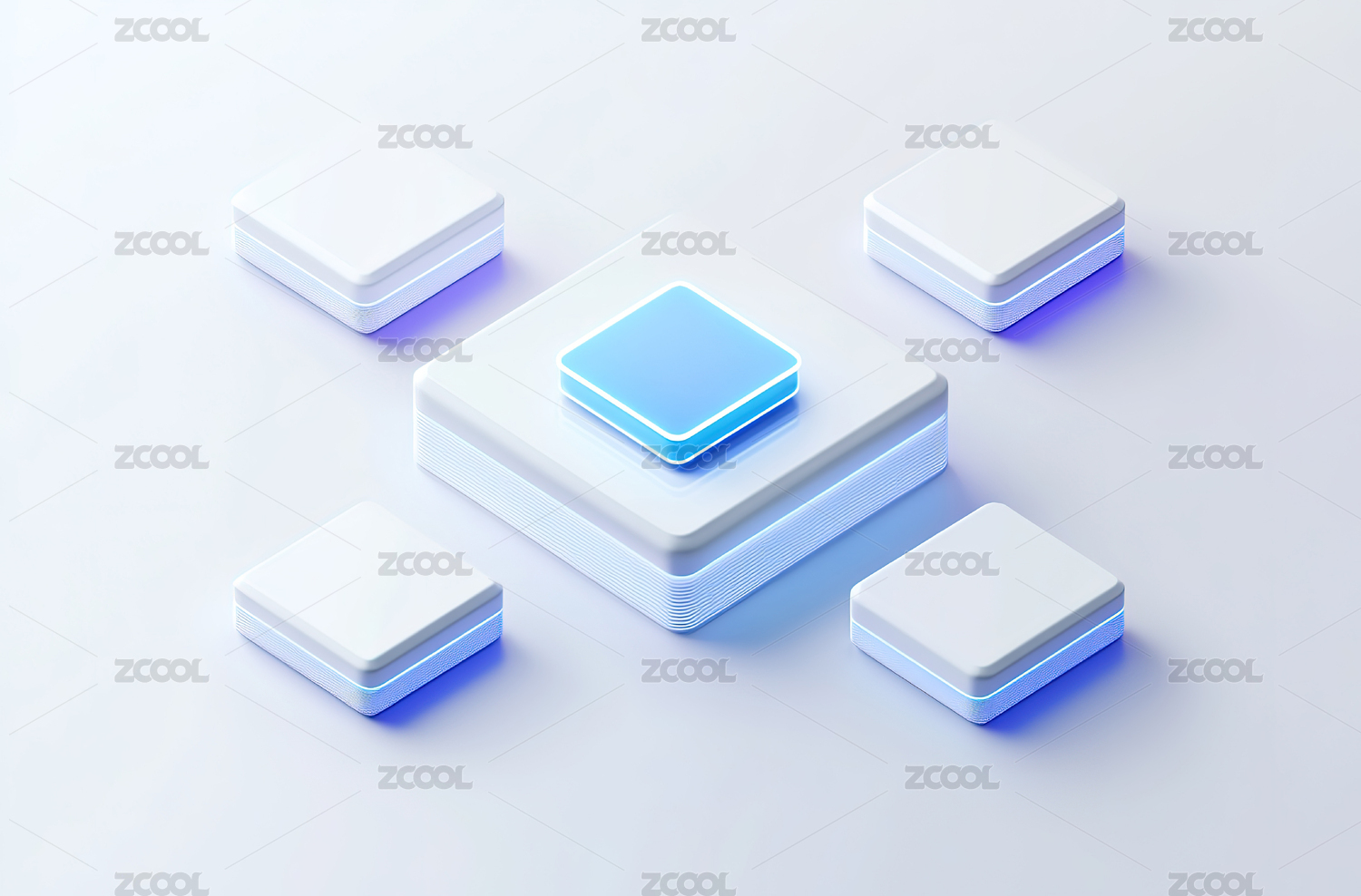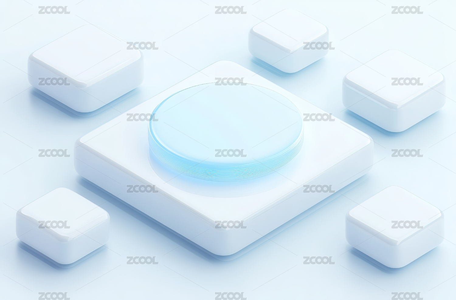 立体方块与蓝色按钮组合