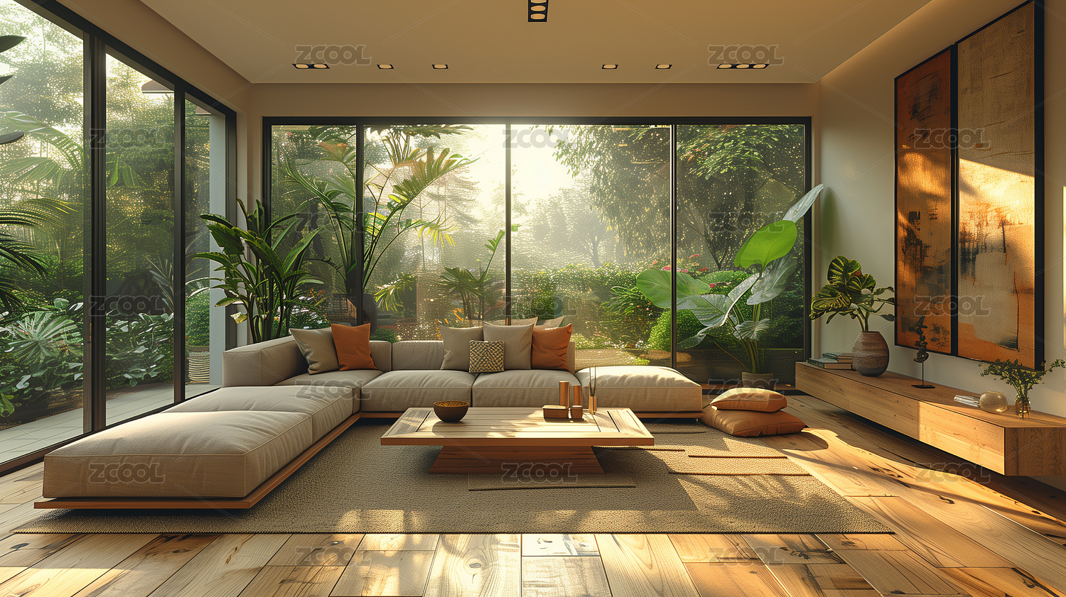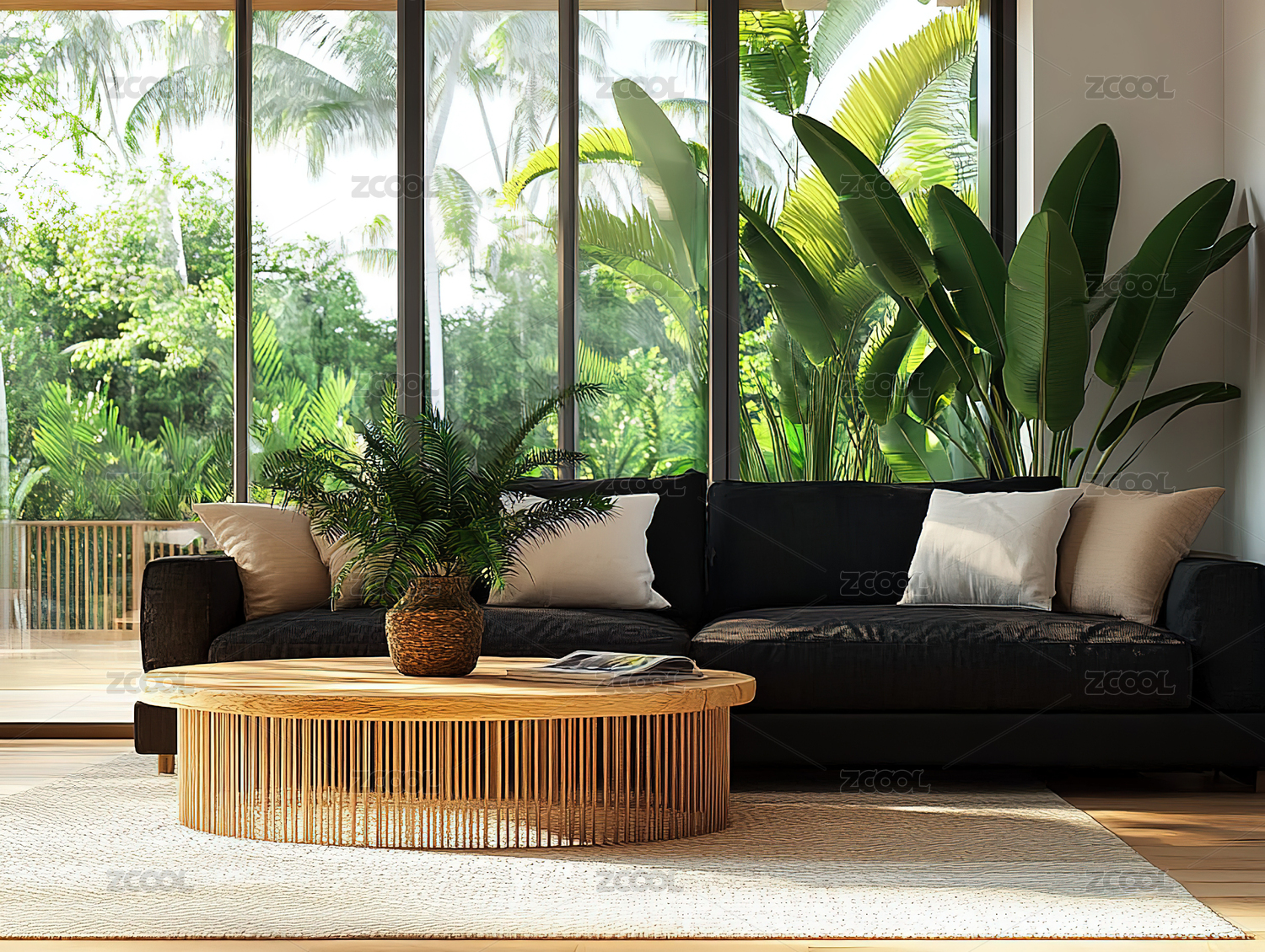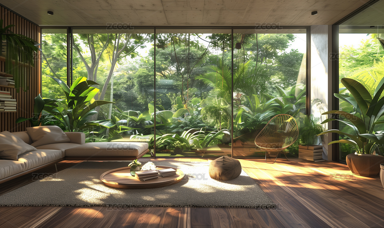 室内设计,客厅,沙发,落地窗,绿色,植物