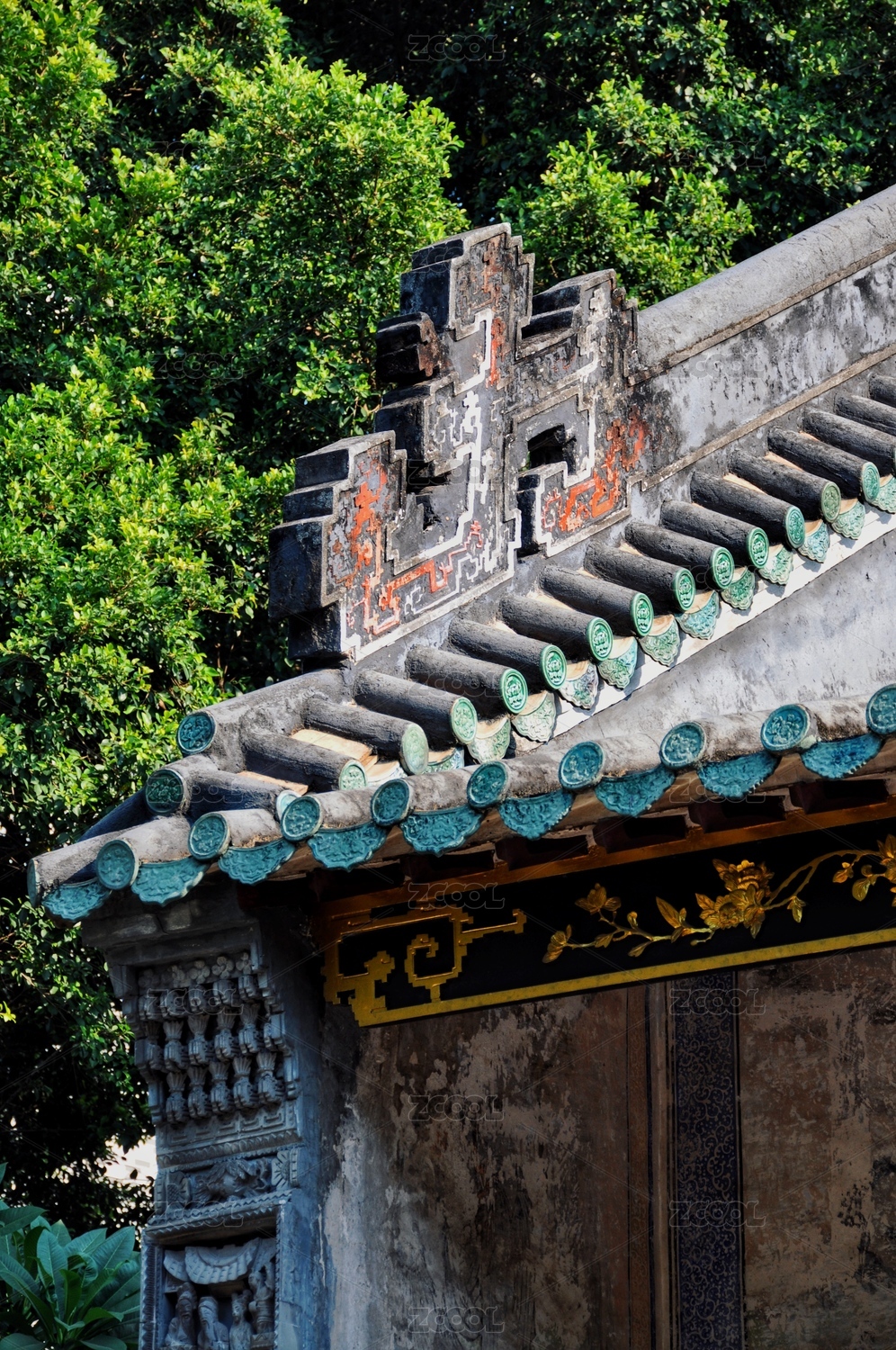 中国广州陈家祠岭南建筑屋顶灰塑陶塑