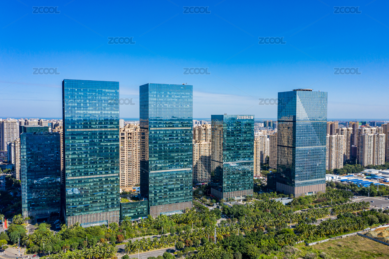 航拍海南海口国兴大道CBD写字楼高楼建筑