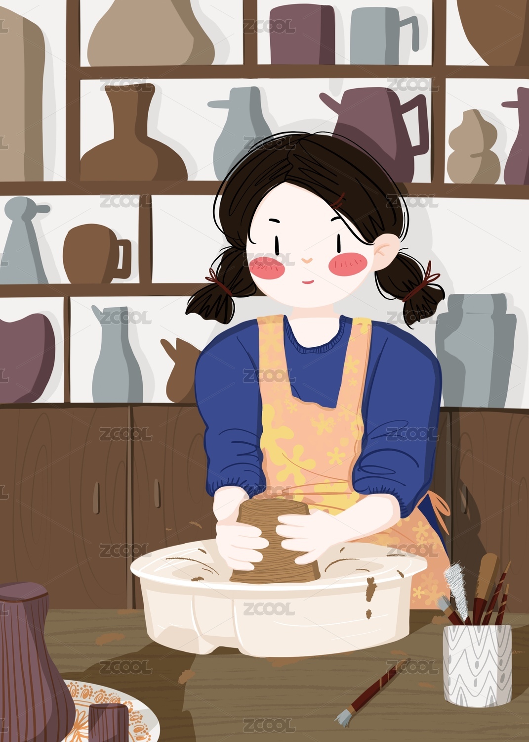 在陶艺工作室里做陶器