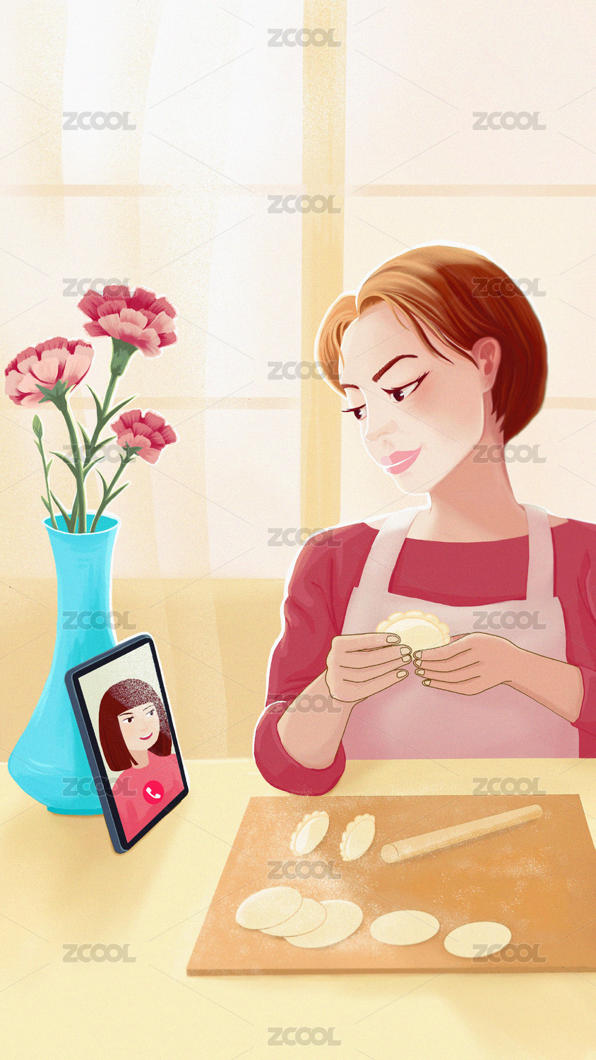 母亲节手绘温馨对话场景海报