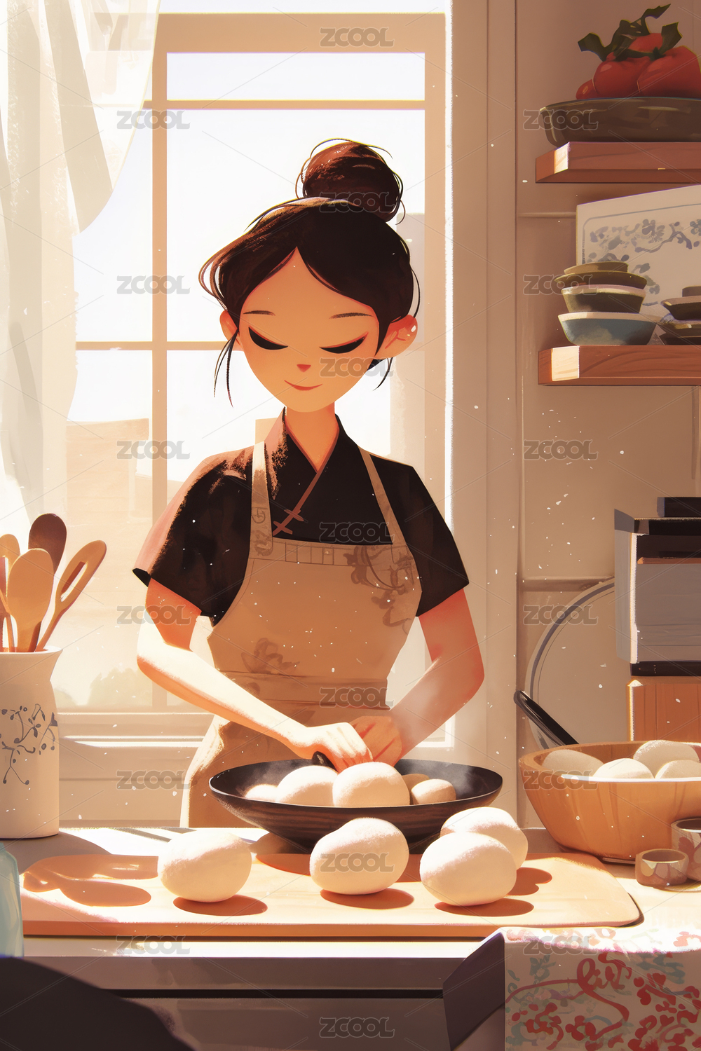 女孩在厨房包饺子