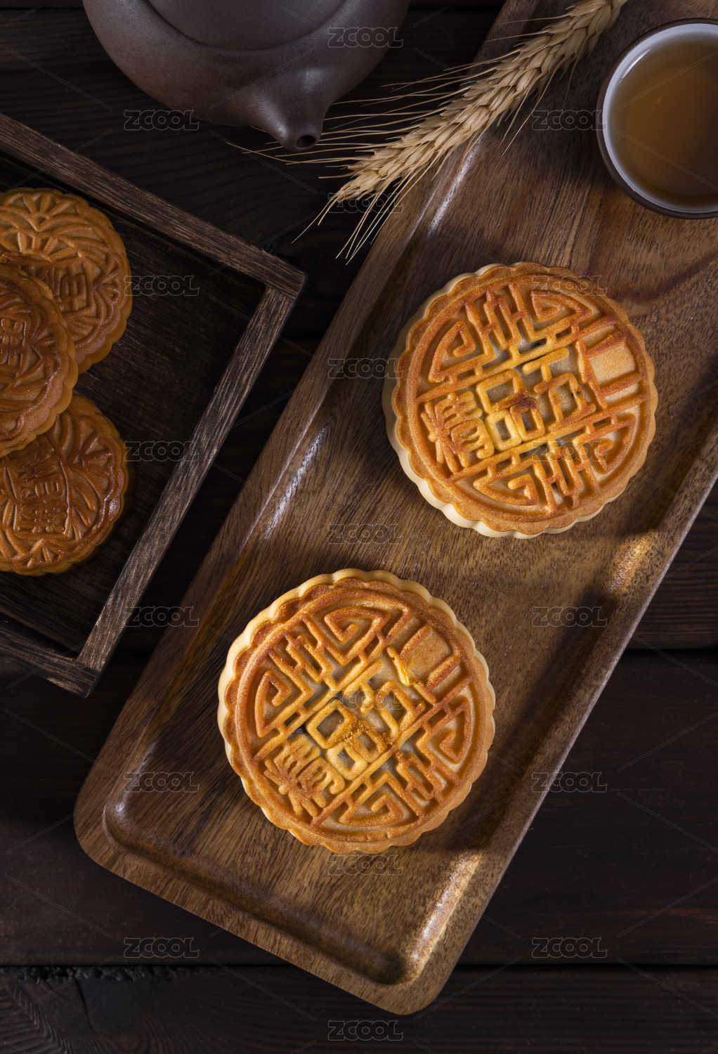 木桌上的月饼