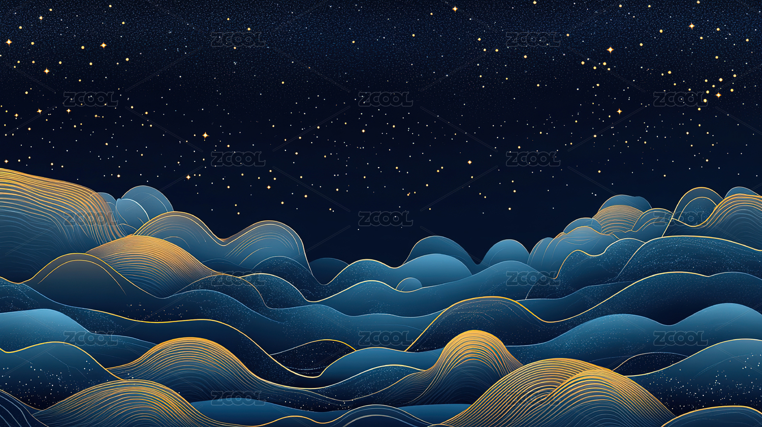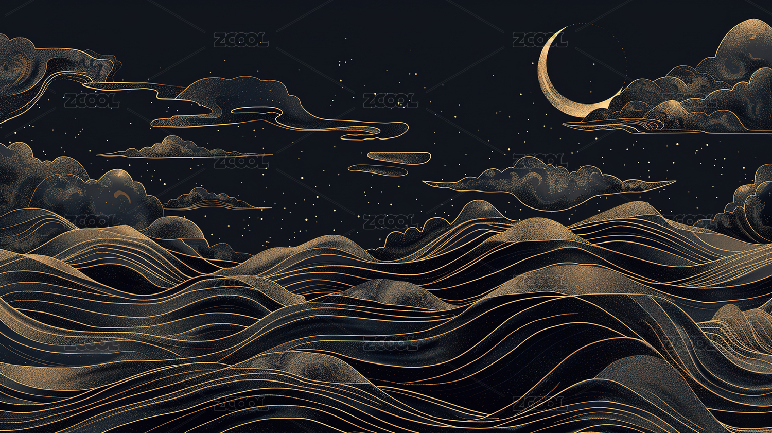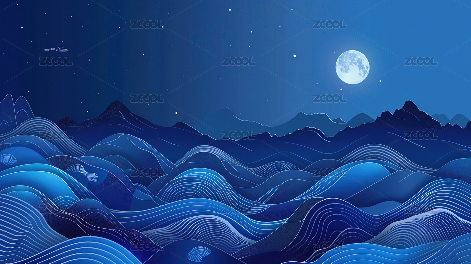 月亮,星空,云朵,中国风,插画,背景,海报,蓝色,夜空,月光