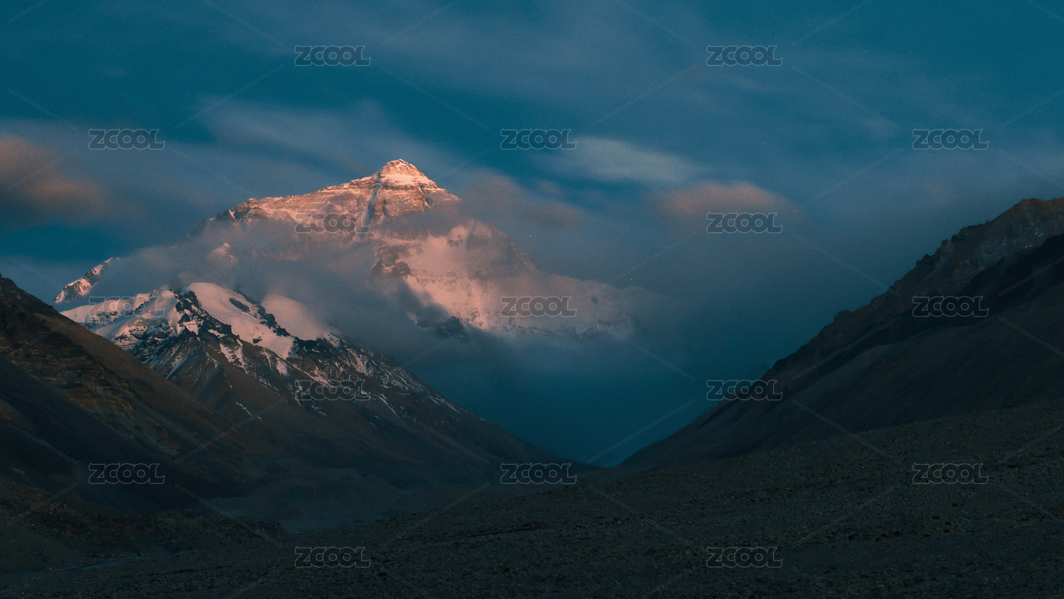 中国西藏日喀则定日县珠穆朗玛峰日落