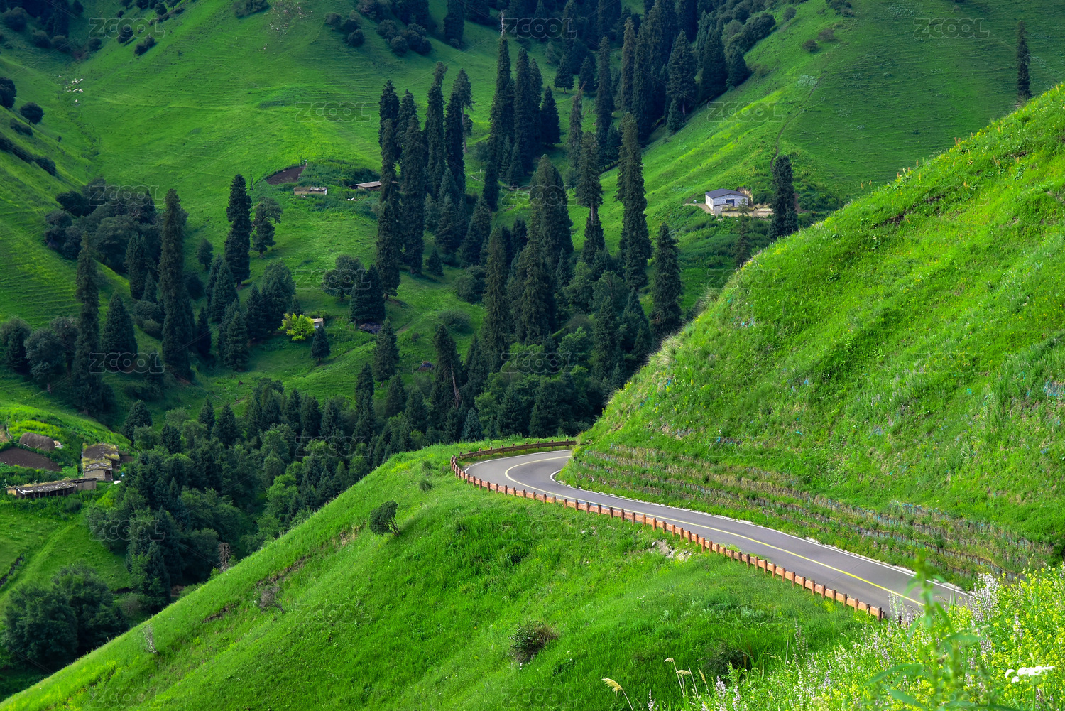 中国新疆伊犁恰西草原塔里木森林公路风光