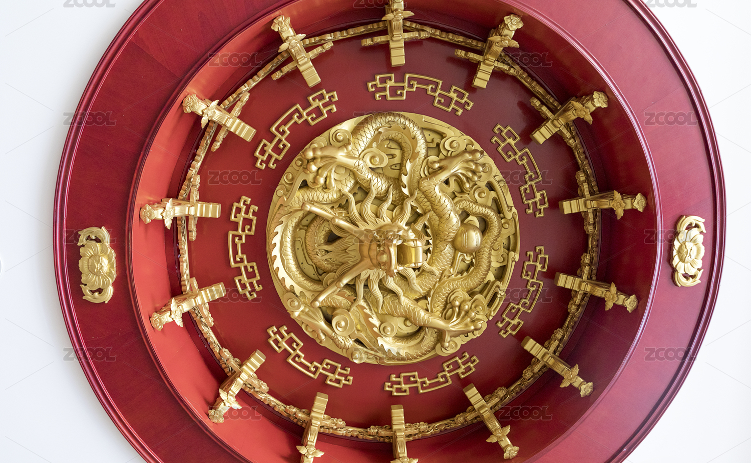 墙壁上的金色雕刻龙