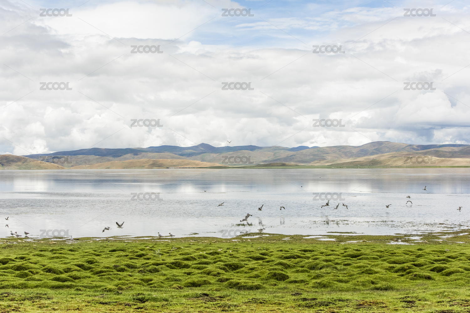 中国西藏阿里高原湖泊无人旷野蓝天云海风光