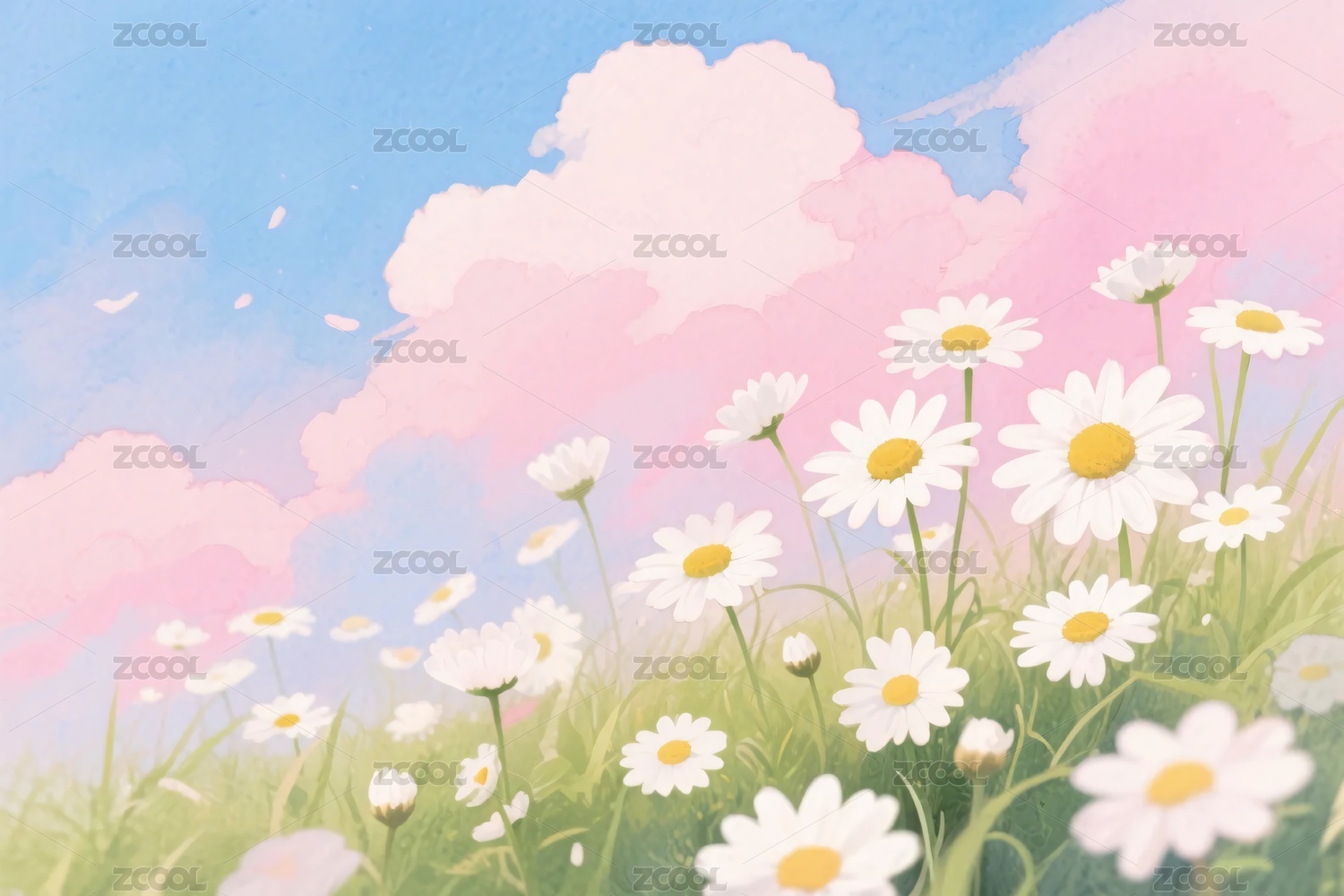 梦幻雏菊草地插画