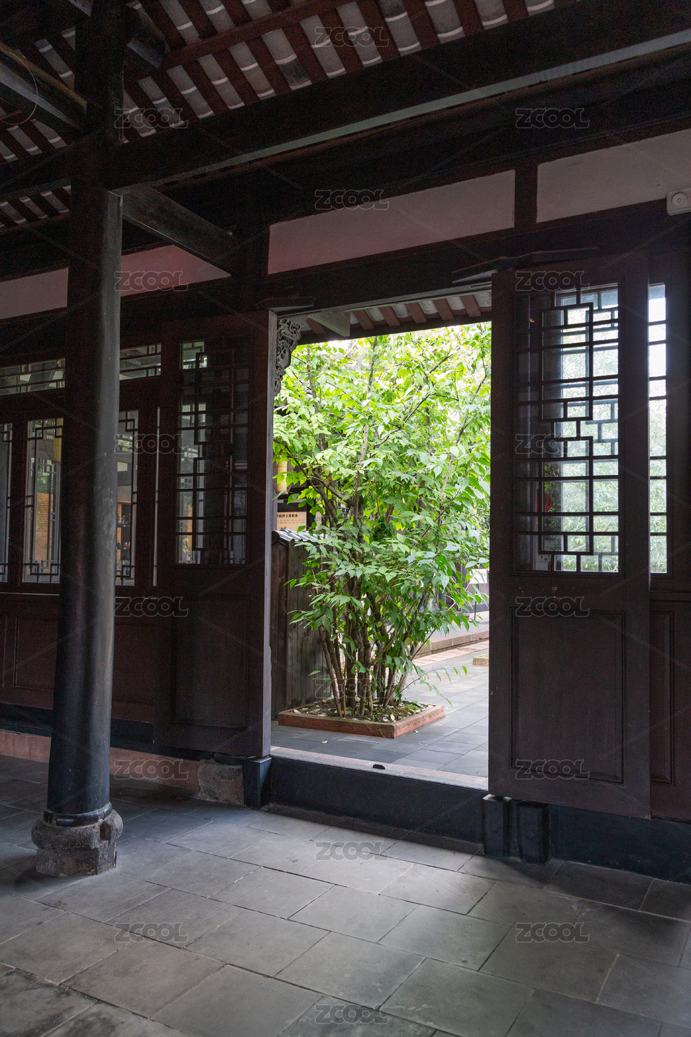 古建筑,中式建筑,庭院,青砖,灰瓦,园林,绿树,老宅,砖墙,老房子