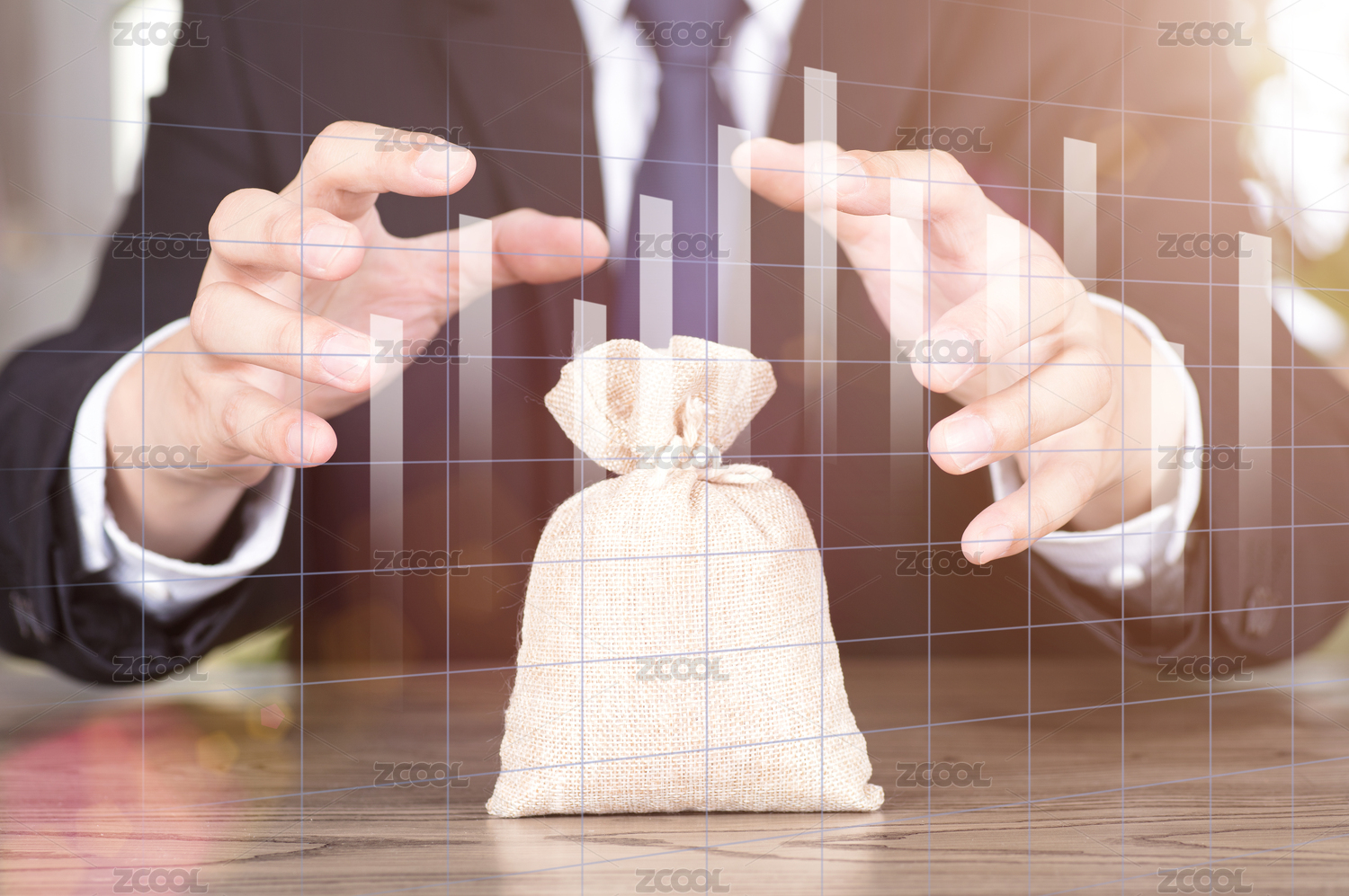 商业商务剪影小人面对下跌的趋势使用保护伞