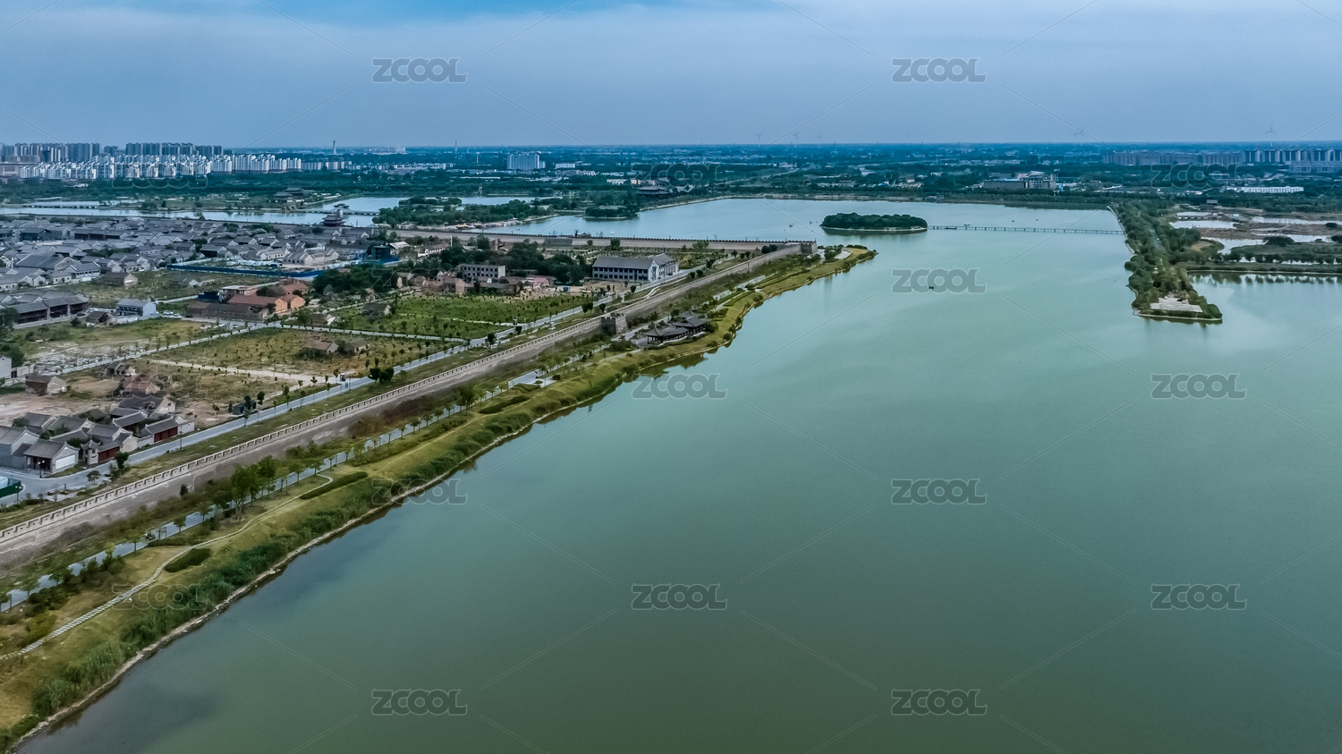 航拍河南郑州象湖生态湿地公园及贾鲁河水系