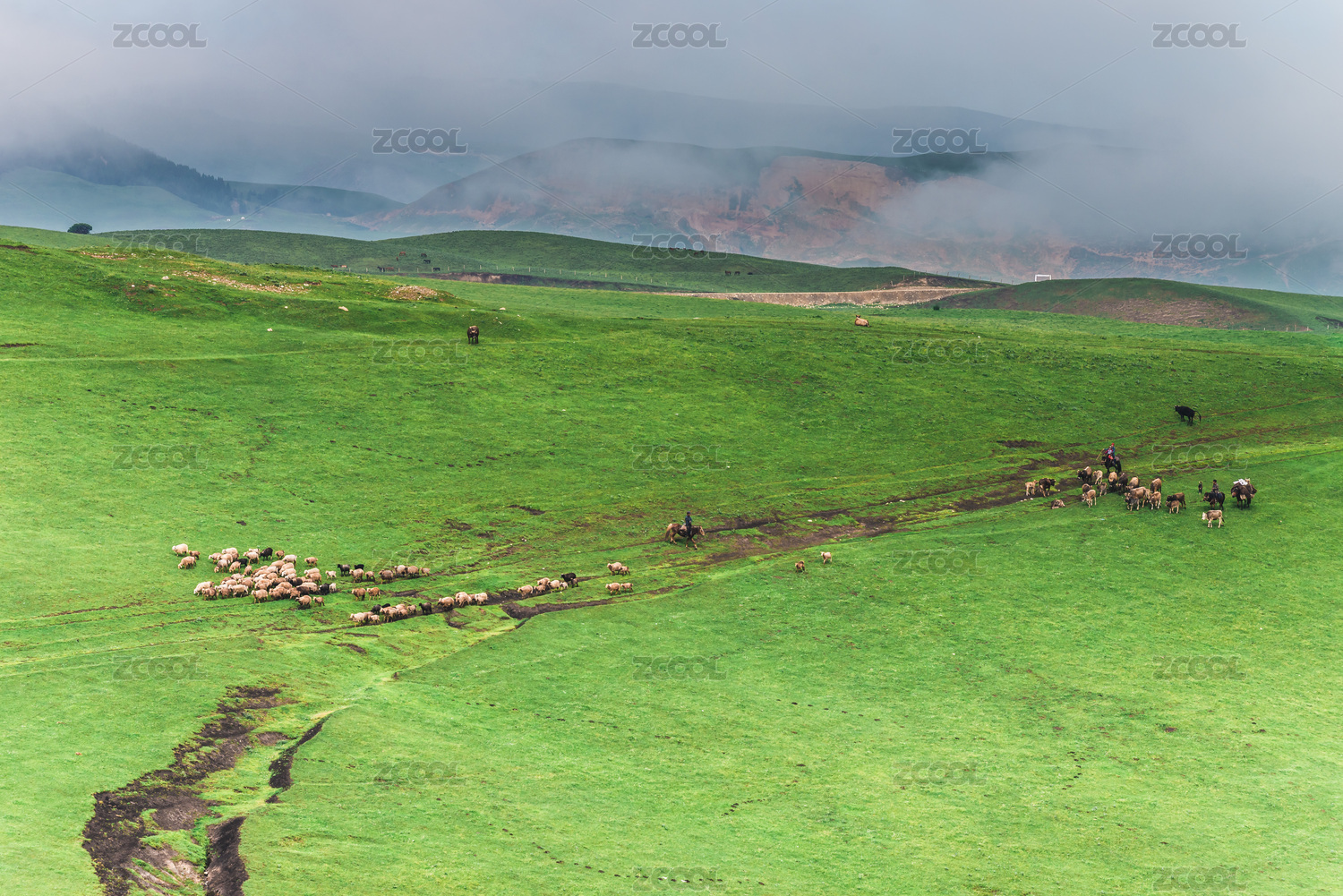 中国甘肃甘南夏河草原羊群夏天的自然风光