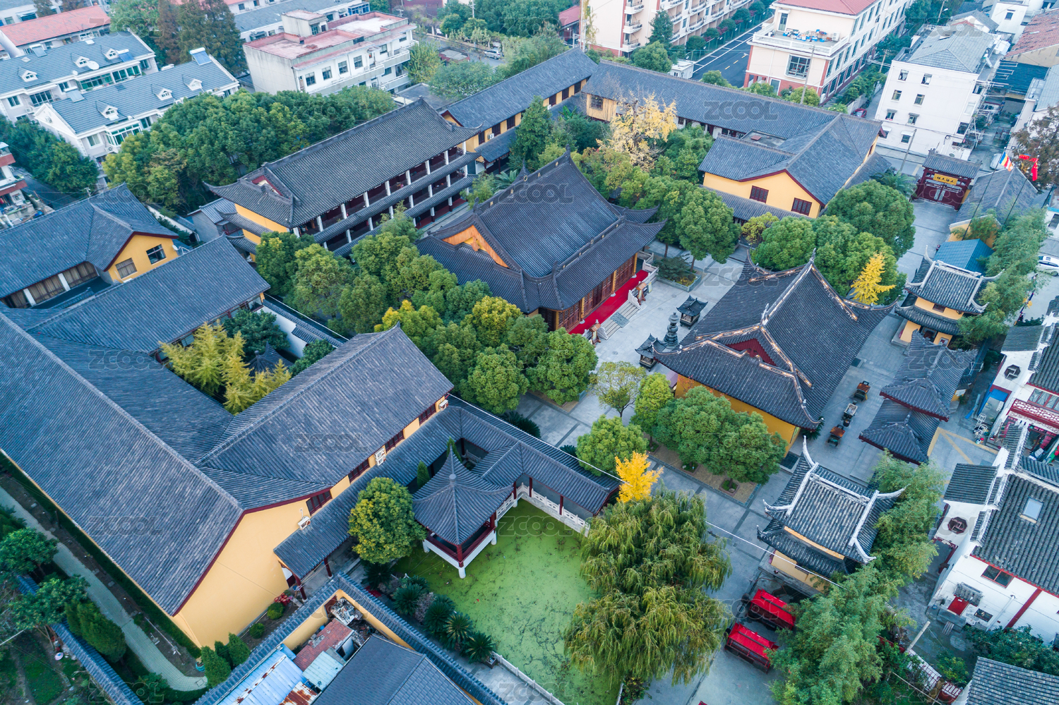 秋天俯瞰中国扬州大明寺景区的园林古建筑