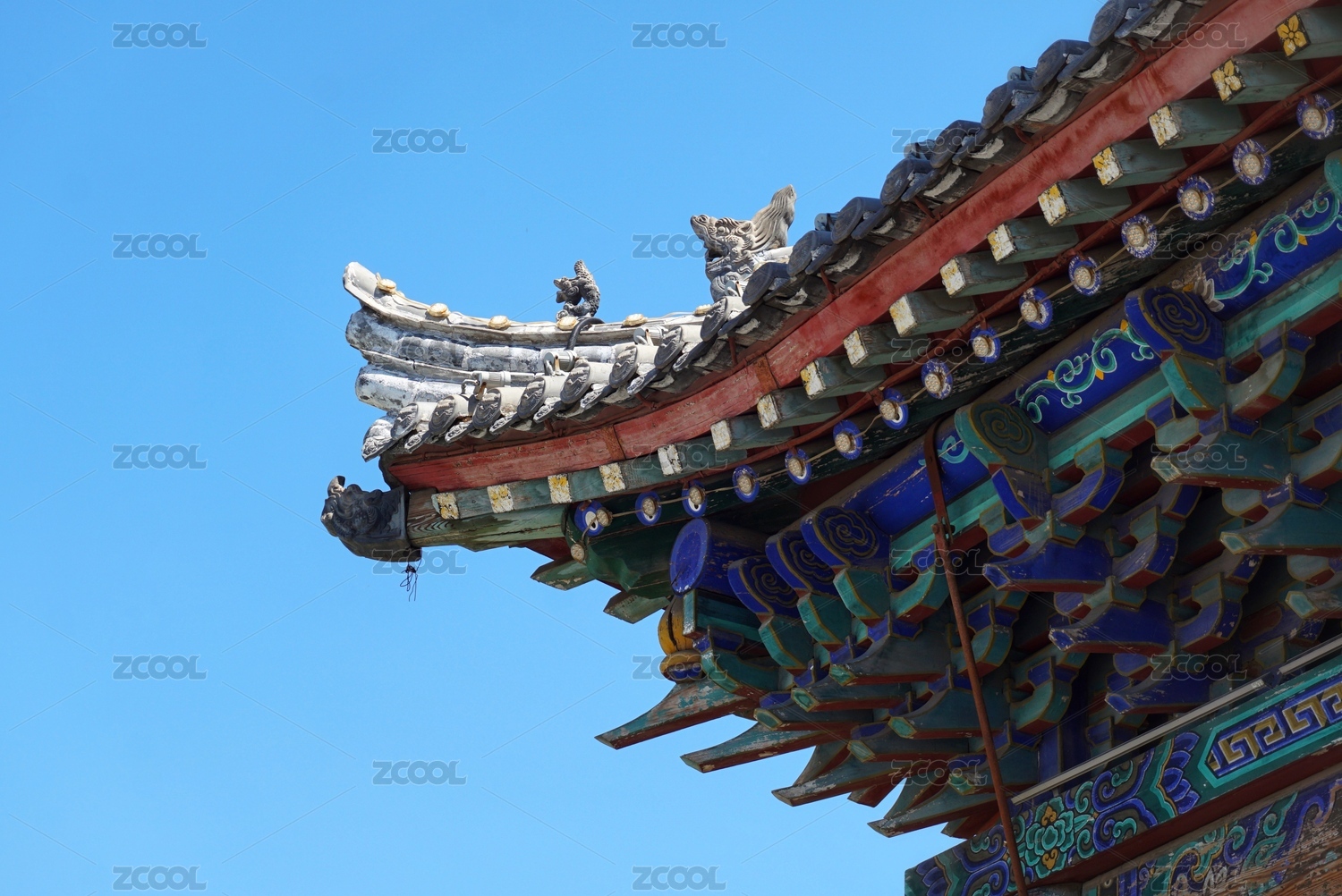 中国传统建筑物飞檐局部特写