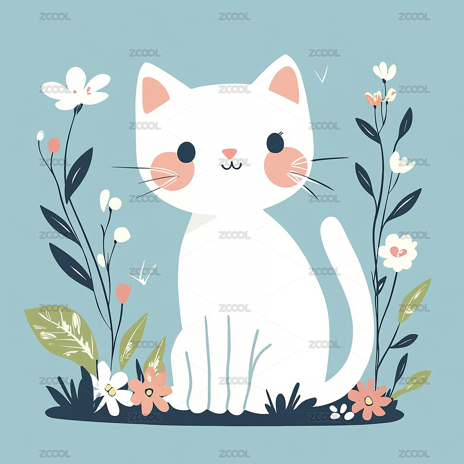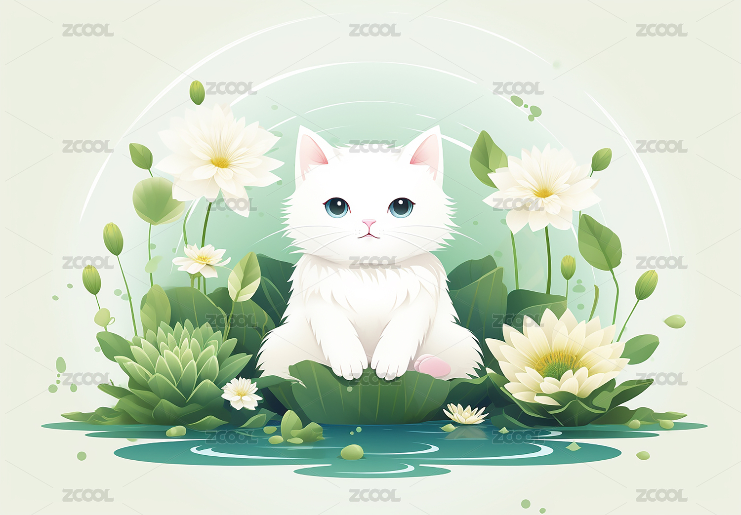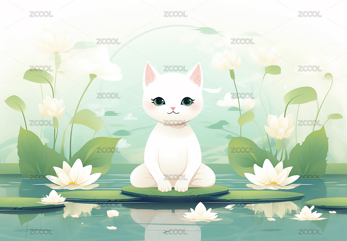 猫,猫咪,猫咪主题壁纸,清新,简约,白色猫咪,夏天与猫咪,荷花,矢量