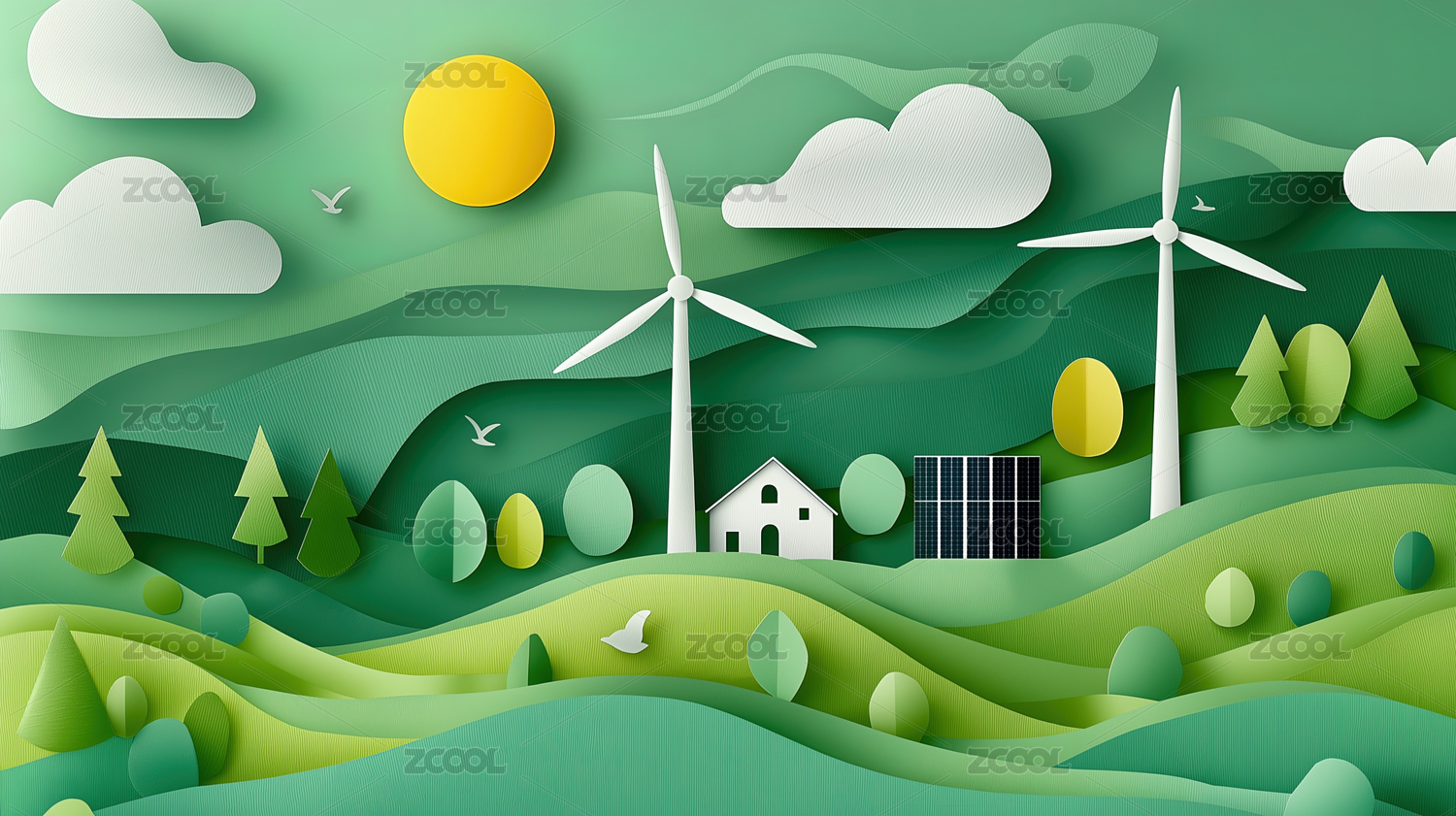 绿色新能源环保城市剪纸插画