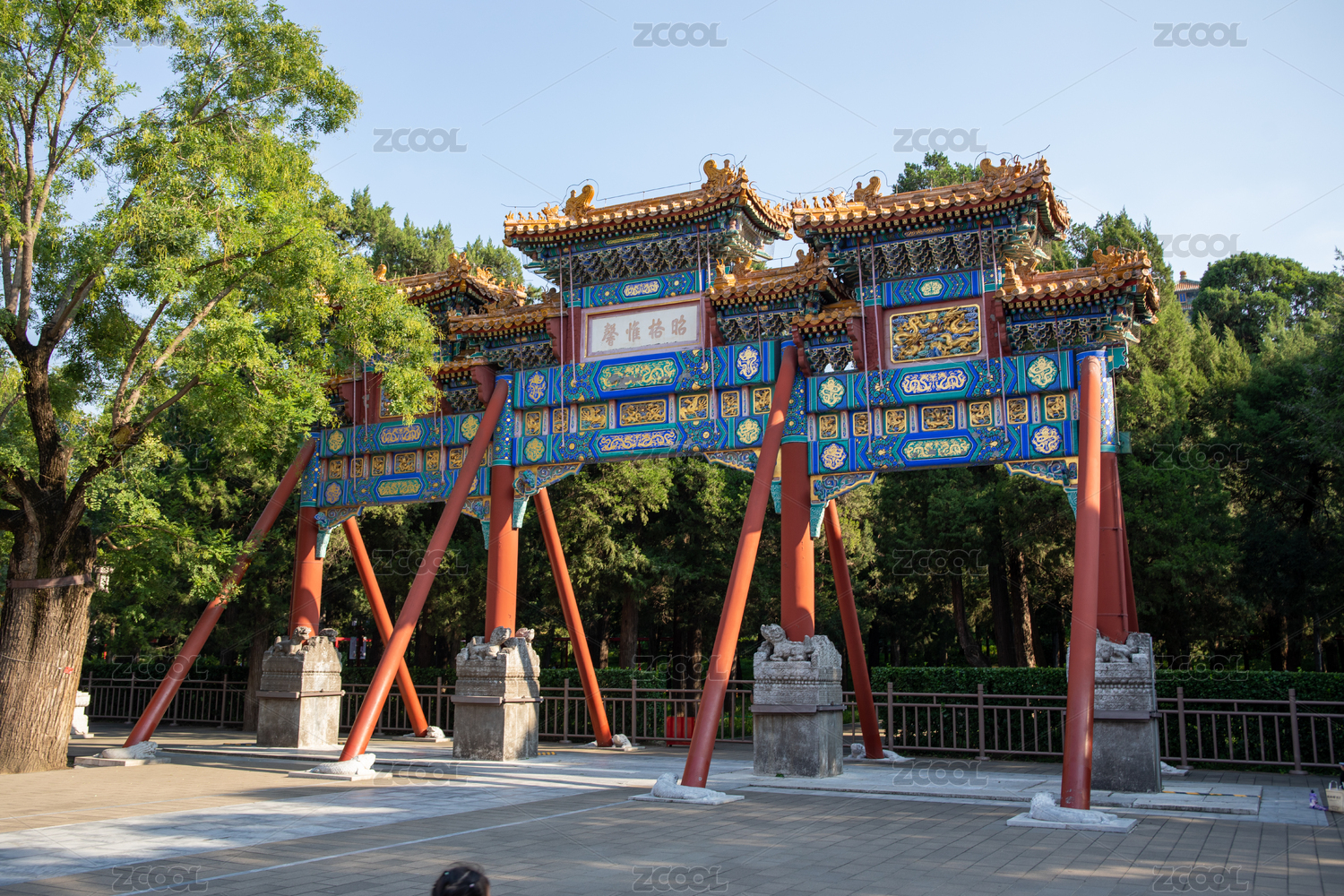中国北京景山公园寿皇殿九举牌楼:东牌坊"绍闻祗遹"