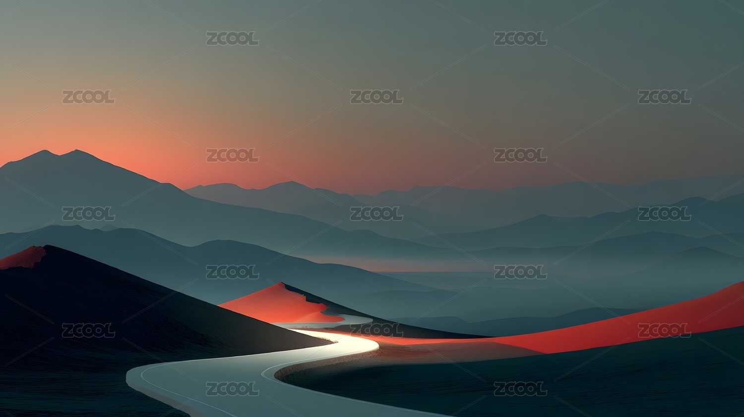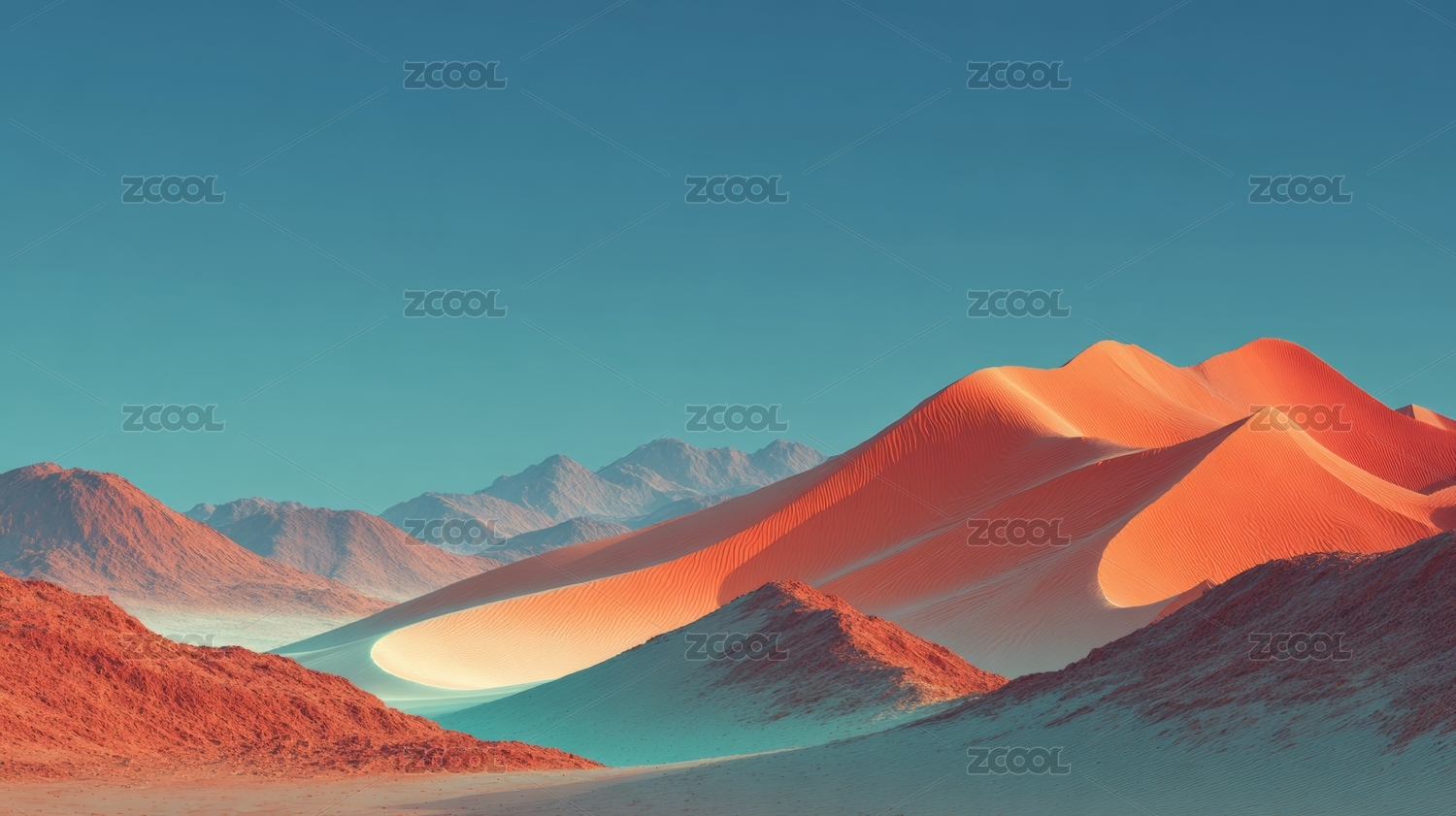 沙漠,山脉,沙丘,风景,自然,美丽,艺术,画作,绘画,插图