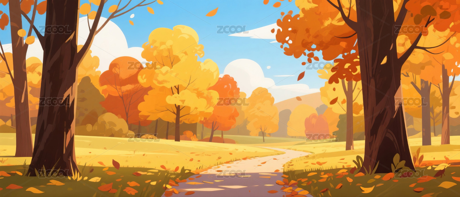 秋天秋季立秋秋分自然户外风景卡通漫画插画