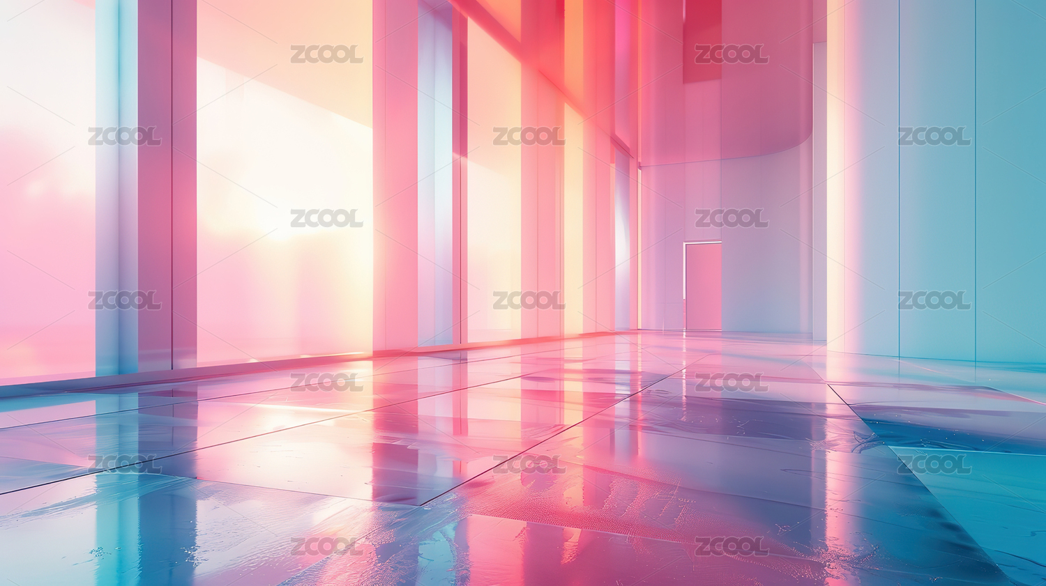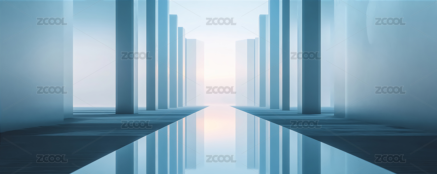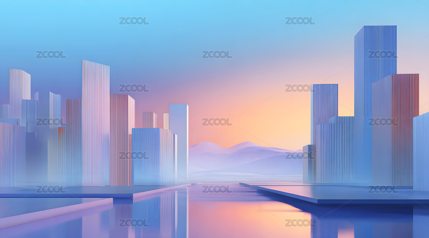 未来,都市,晨光,水面,倒影,建筑,高楼,太阳,清晨,薄雾