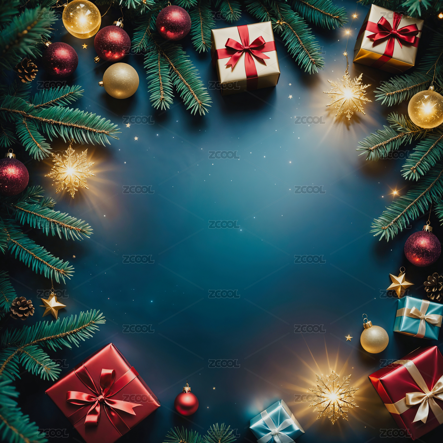 圣诞节礼物和装饰边框主题