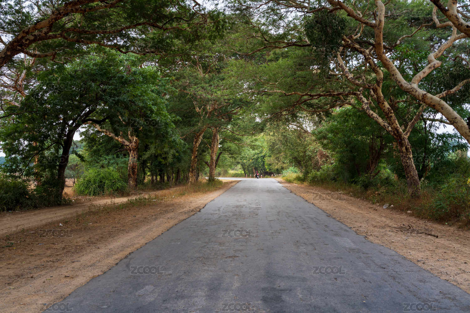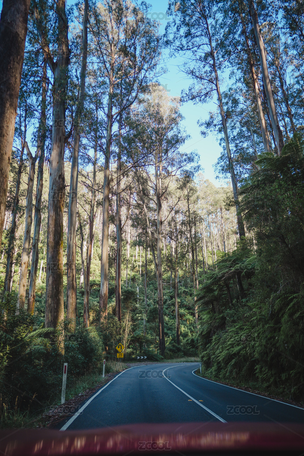 旅游风景区内的自然风光,绿色的树林和林荫道