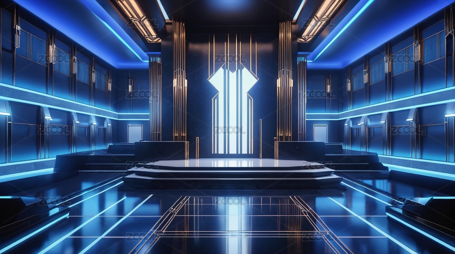 3D渲染科幻延伸蓝色未来科技感空间场景