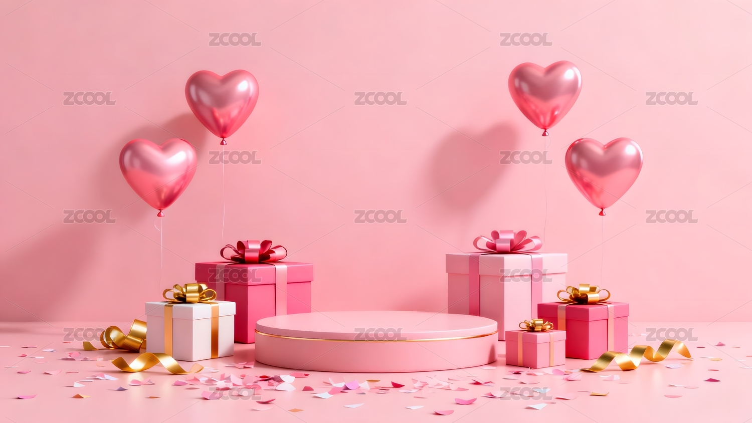 3D渲染的情人节台背景