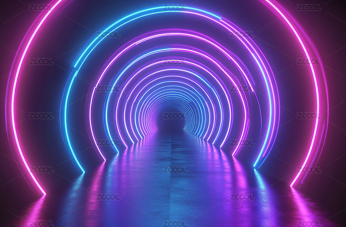 人造空间,AI数字艺术,光,发光,无人,未来,插画,三维图形,隧道