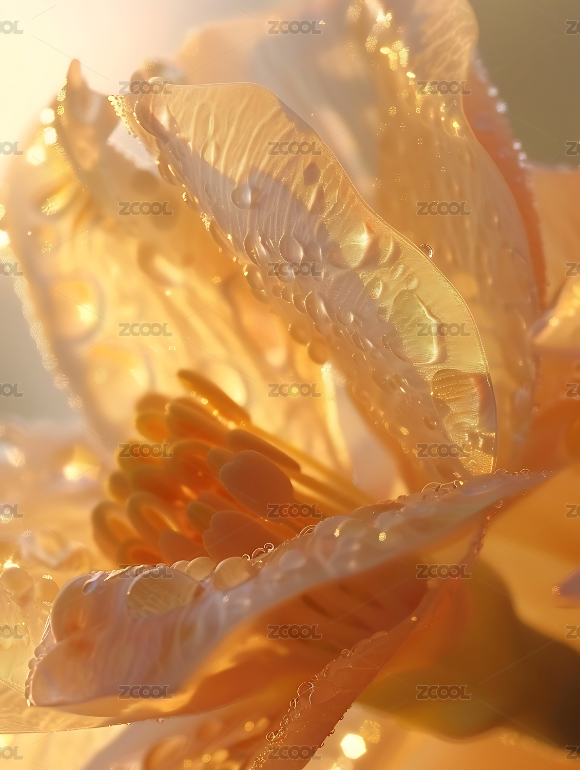 AIGC202402,金色,鲜艳,山茶花,花瓣,水珠,特写,细节,局部,湿润