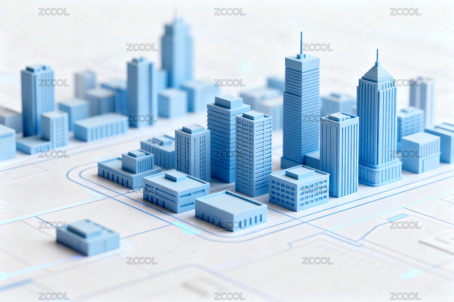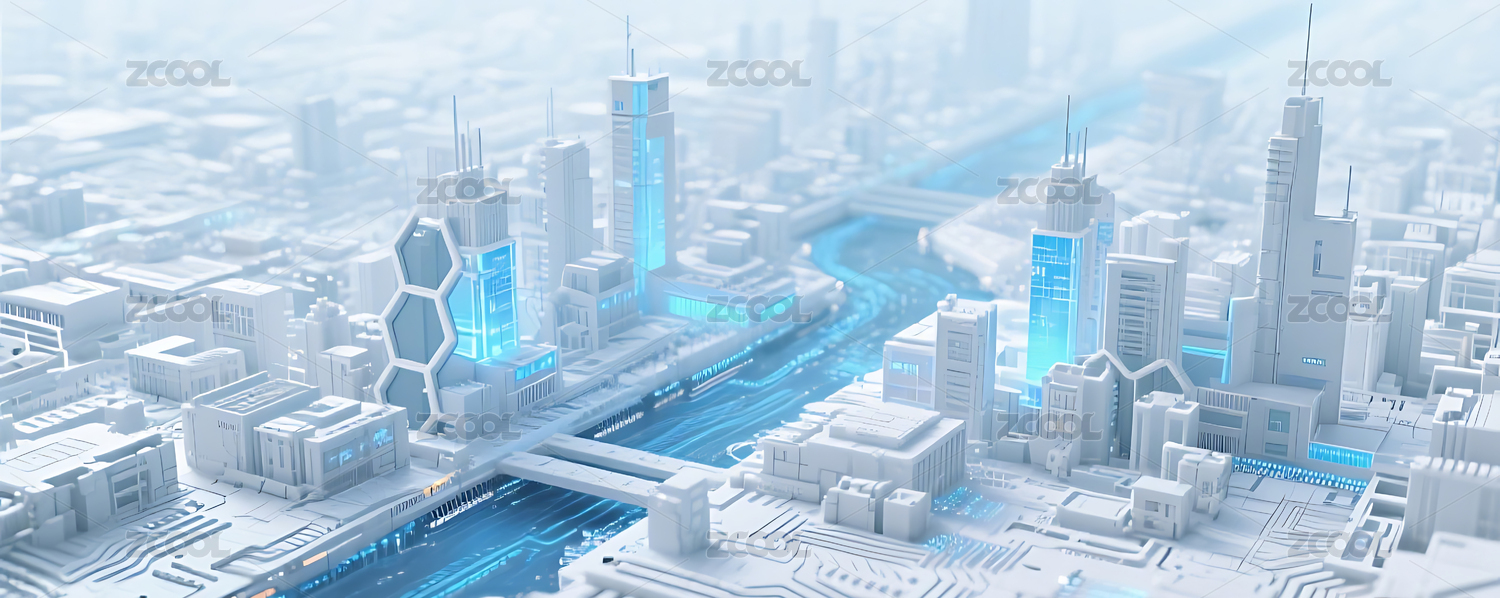数码科技蓝白色智慧城市智能建筑插画海报背